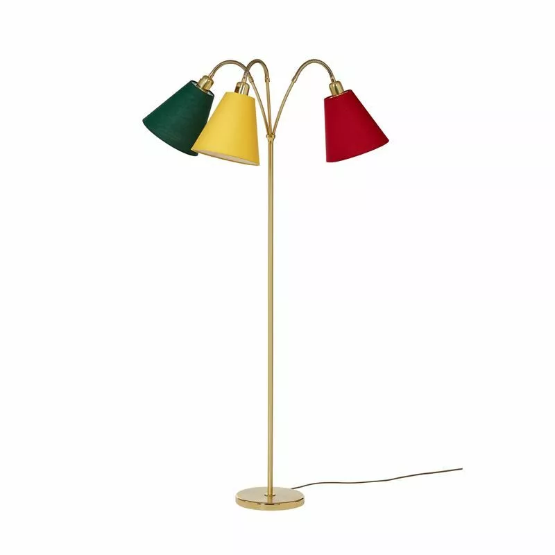 Golvfoten Haga är en vacker lampa med tre armar från Ah Belysning. Du väljer själv vilka skärmar du vill montera på din Haga lampa och därmed anpassa lampan efter dina färger och stil.