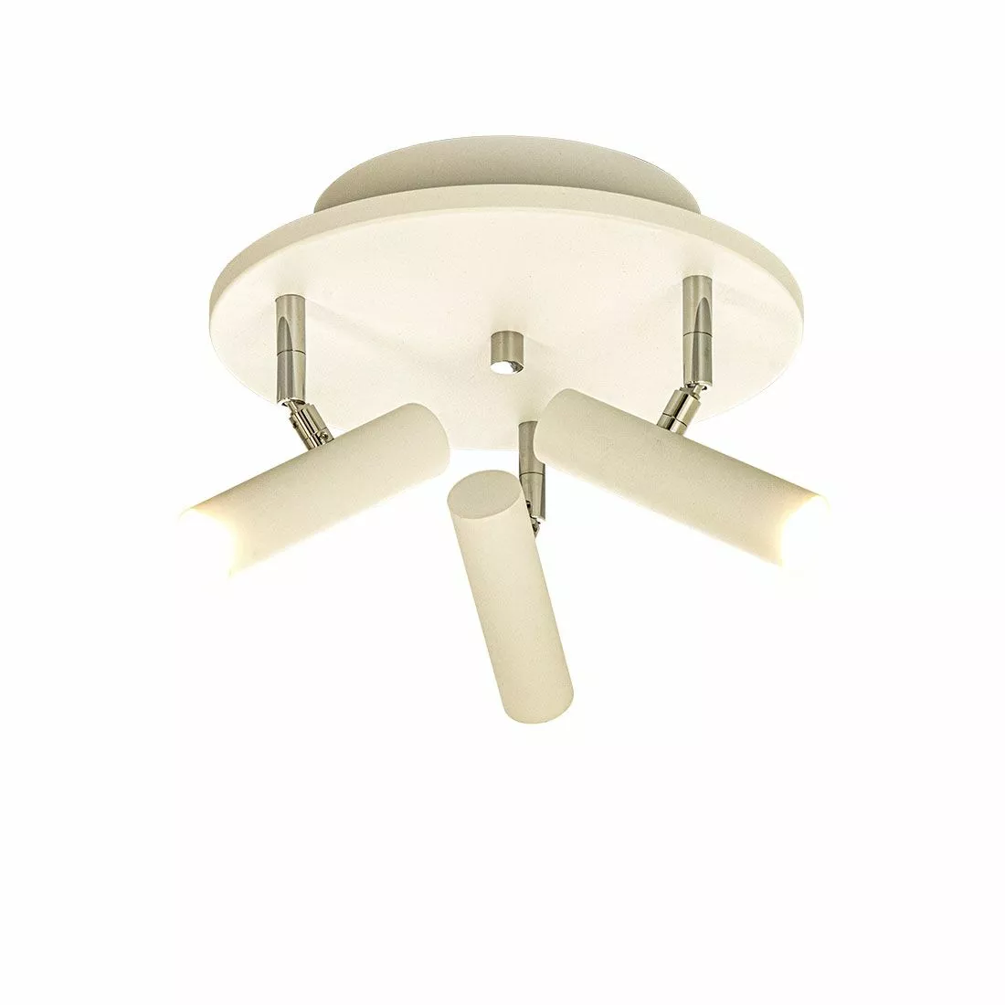 Denna smidiga runda spotlight med tre ljuskällor är perfekt i ett mindre rum som en hall eller garderob. Ljuskällorna är dimbara för att kunna sätta rätt ljus i rummet men tänk på att dimmern på väggen måste klara LED ljuskällor.