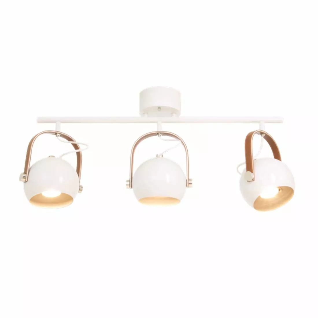 Snygg trendig spotlight i vit metall med detaljer i krom och konstskinnremmar. Takspotlighten har tre klotformade lampskärmar med vardin GU10 sockel med plats för passade ljuskälla. Ljuset går att rikta dit du önskar vilket gör Bow taklampa till både en praktisk och snygg taklampa.