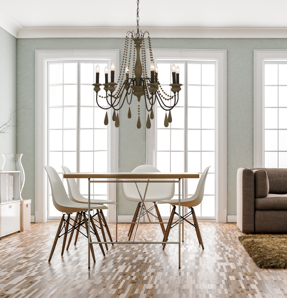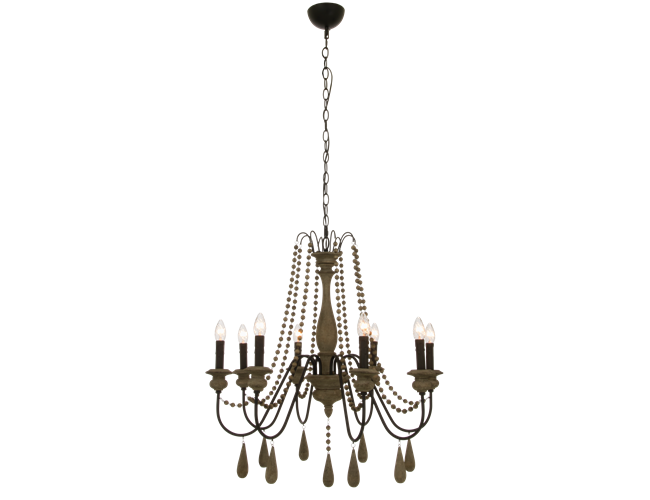 Brissac är en läcker takkrona från Aneta Lighting med en svart/antikträ finish. Armaturen har pärlband med träkulor som löper från kronans topp till armarna. Köp till ett par vackra dekorativa ljuskällor för att få till det lilla extra.