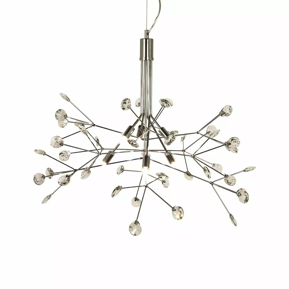 Fiesta är en vacker taklampa i krom med dekorativa K9 kristaller. Stilren och modern kristallampa där armarna grenar ut sig likt kvistar. Taklampan bestyckas med 6st G9 ljuskällor som du hittar här: