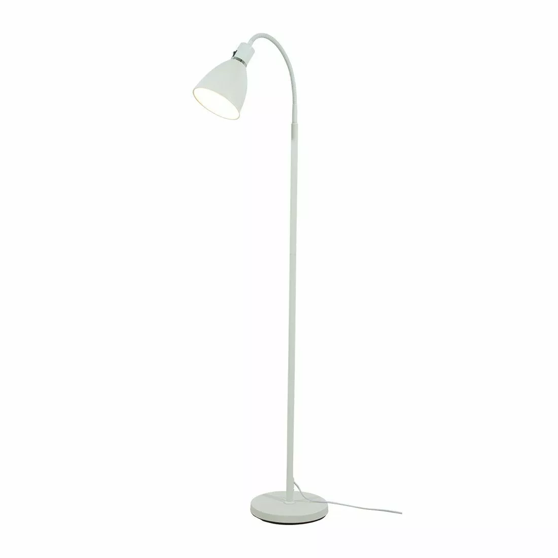 Idre är en modern golvläslampa i mattvit metall med elegant dekorring i krom. Idre har strömbrytare uppe vid lamphuset och kan bestyckas med max 40W E27 ingår ej.
