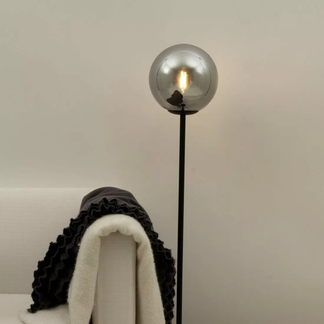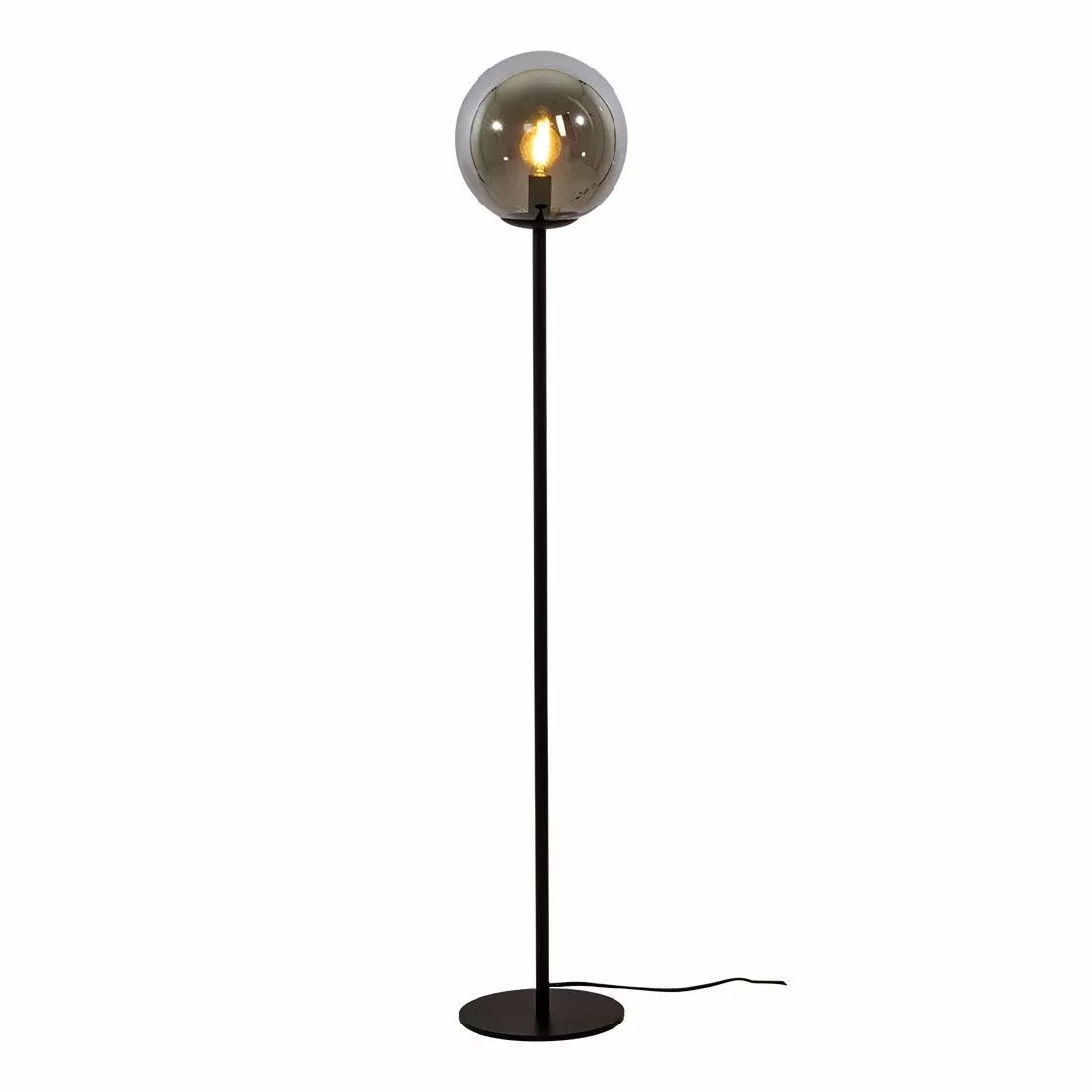 Molekyl är en stilren golvlampa med svart stomme och rökfärgad kupa i glas. Dess design gör sig bra i vardagsrummet där den sprider ett mjukt sken och ger ett trendigt inslag. Molekyl är en golvlampa med enkelt formspråk men som sticker ut från mängden. Kompletteras med en E14-ljuskälla med filament för bästa resultat.
