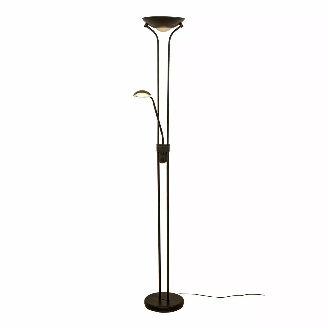 Nice en modern uplight i mattsvart med separat läslampa som har en justerbar arm för bästa anpassning av belysningen. Lampan ger ett varmvitt ljus och har dimmer på både läslampan och uplighten.