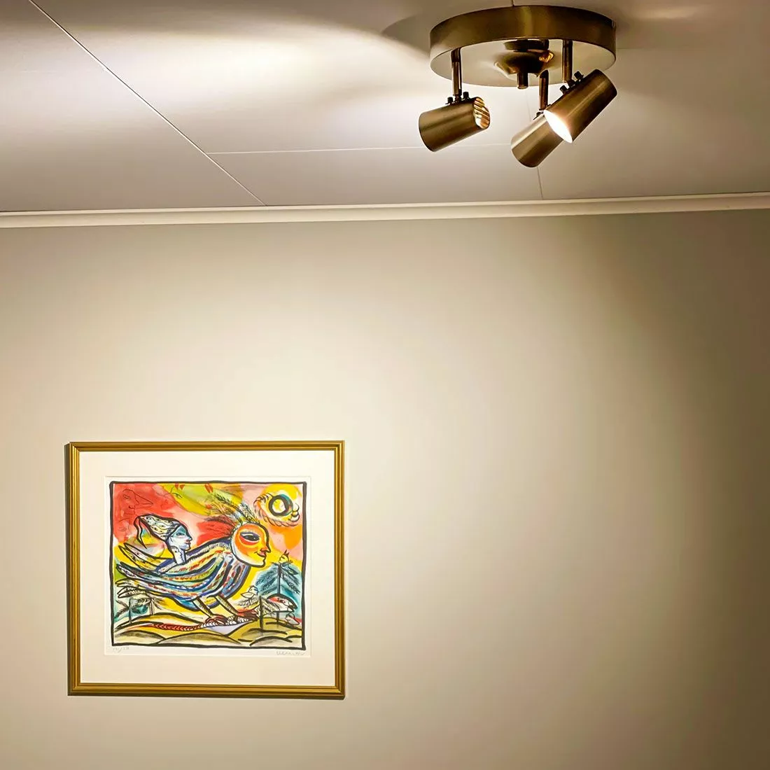 Pilot takspot i antikfärgad metall. Passar lika bra i köket, som i hallen eller sovrummet där det finns ett behov av starkt och bra ljus. Varje spothuvud är riktbart.