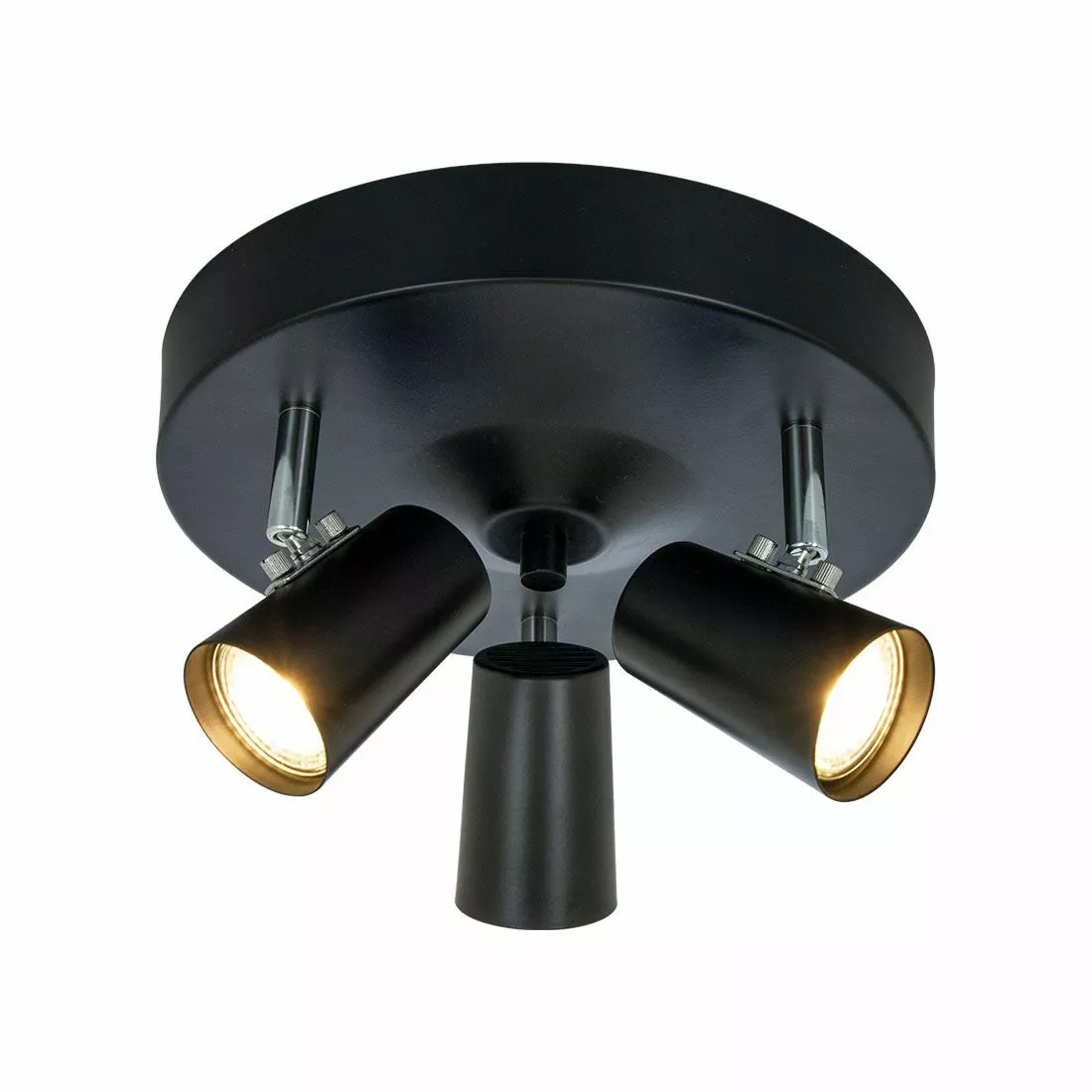 Pilot rund takspot i svartlackerad metall och detaljer i krom har en stilren design som passar in i de flesta hem och inredningsstilar. Justerbara lamphuvuden låter dig styra vart du vill rikta ljuset, till exempel en tavla, arbetsyta eller hylla.