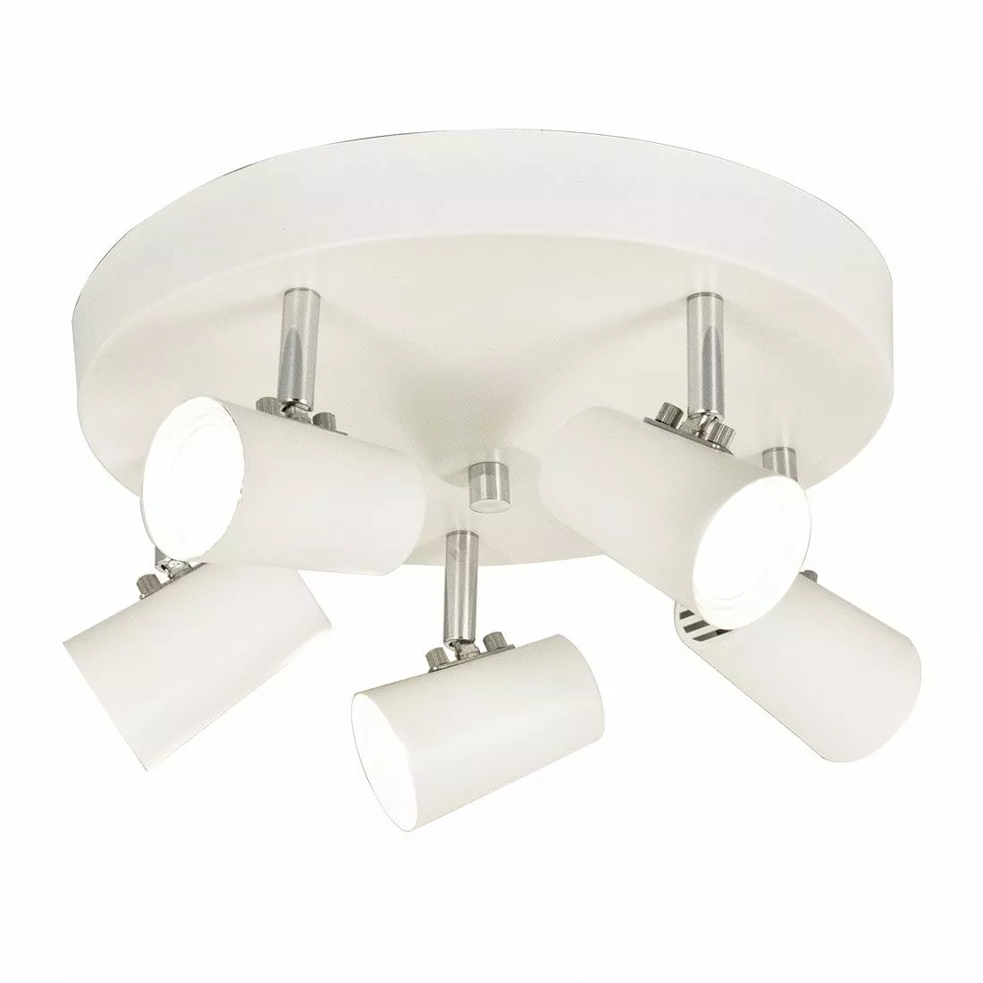 Pilot takspot i vit metall. Passar lika bra i köket, som i hallen eller sovrummet där det finns ett behov av starkt och bra ljus. Varje spothuvud är riktbart.