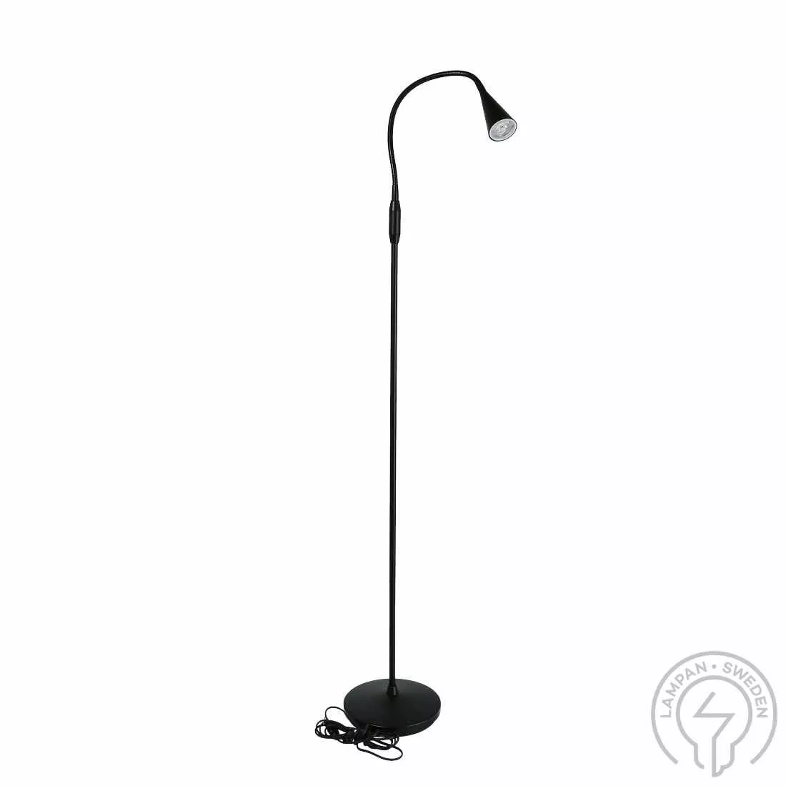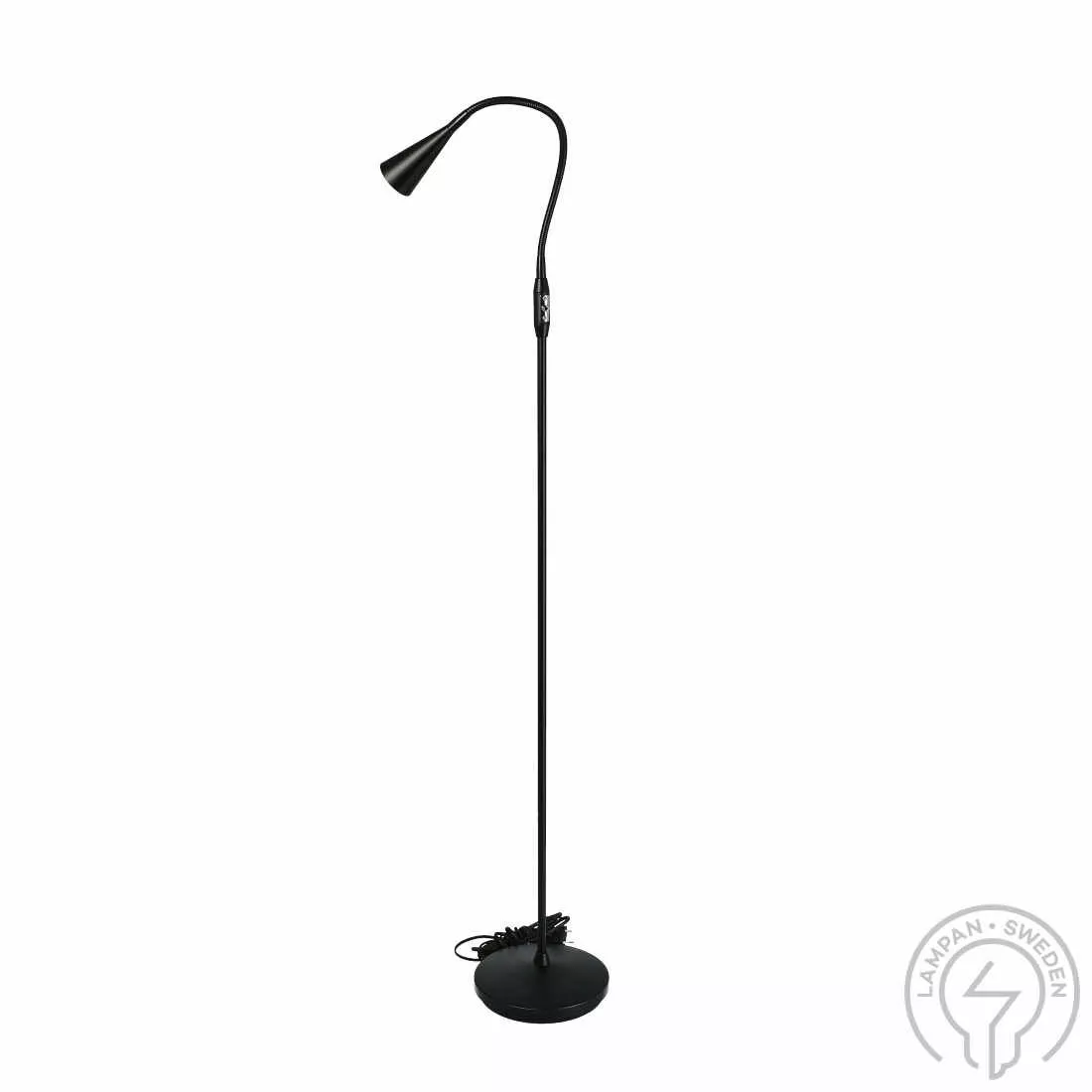 Golvlampa i stilren design från svenska Belid, utbytbar dimbar ljuskälla ingår.