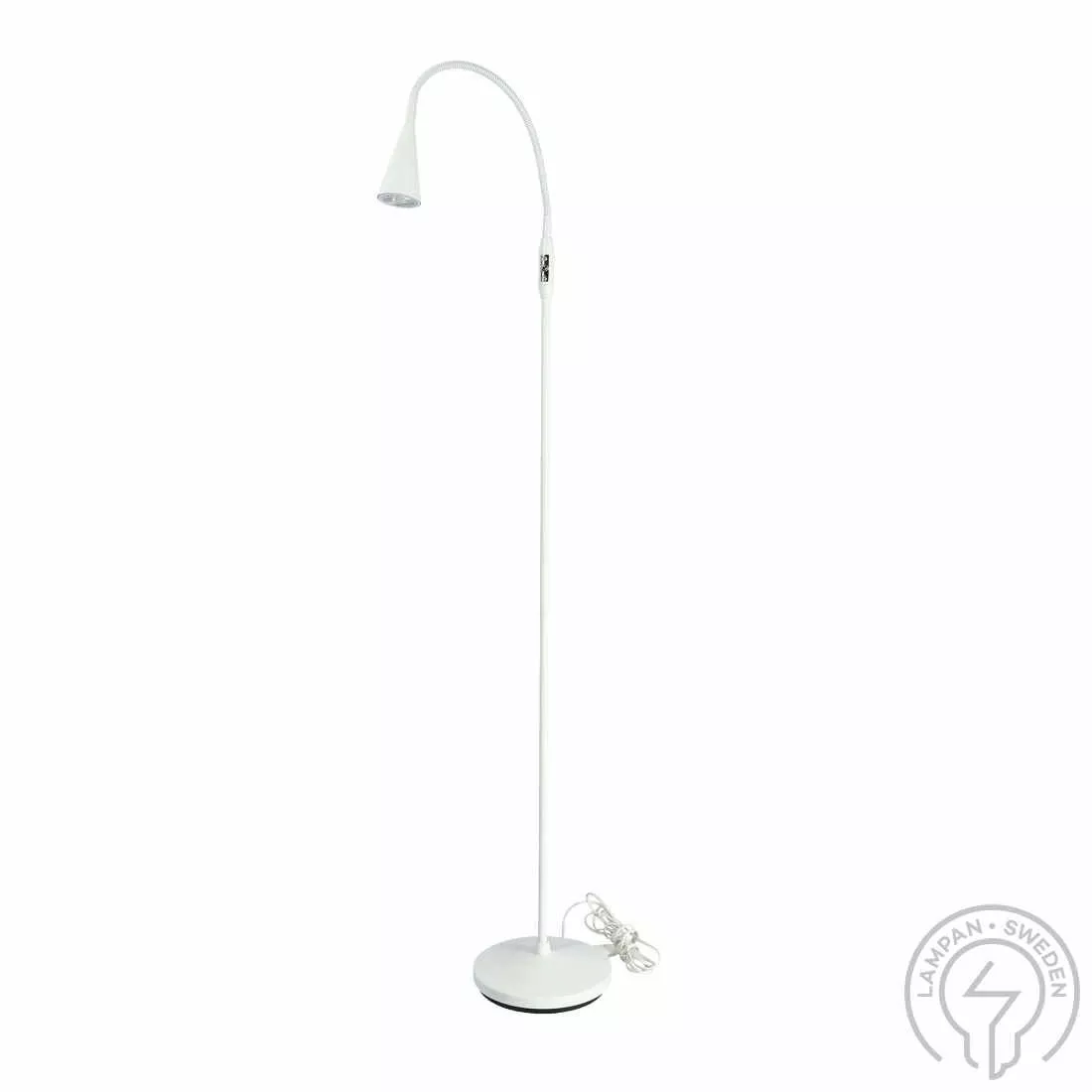 Golvlampa i stilren design från svenska Belid, utbytbar dimbar ljuskälla ingår.
