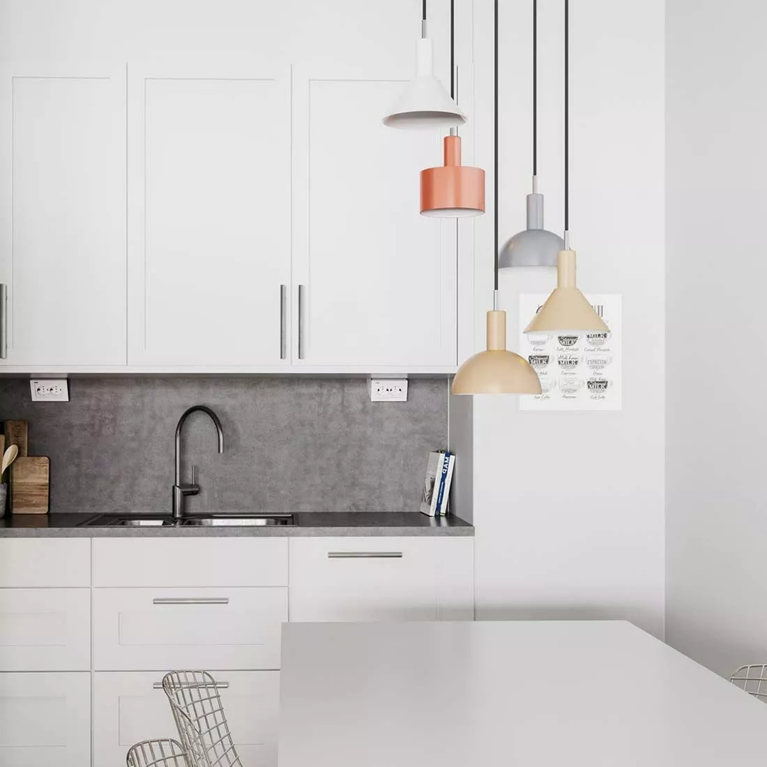 Cabano är en taklampa med en iögonfallande design som känns fräsch och uppiggande i ett rum. Cabano kan placeras över soffbordet såväl som matbordet och ger ett lekfullt och innovativt intryck. Cabano har fem stycken lampskärmar i metall där varje lampskärm har olika färg och form där lekfullhet blir den röda tråden. Cabano är den perfekta taklampan till det i övrigt vita och stilrena hemmet och blir en inredningsdetalj som tar för sig utan att ta över.