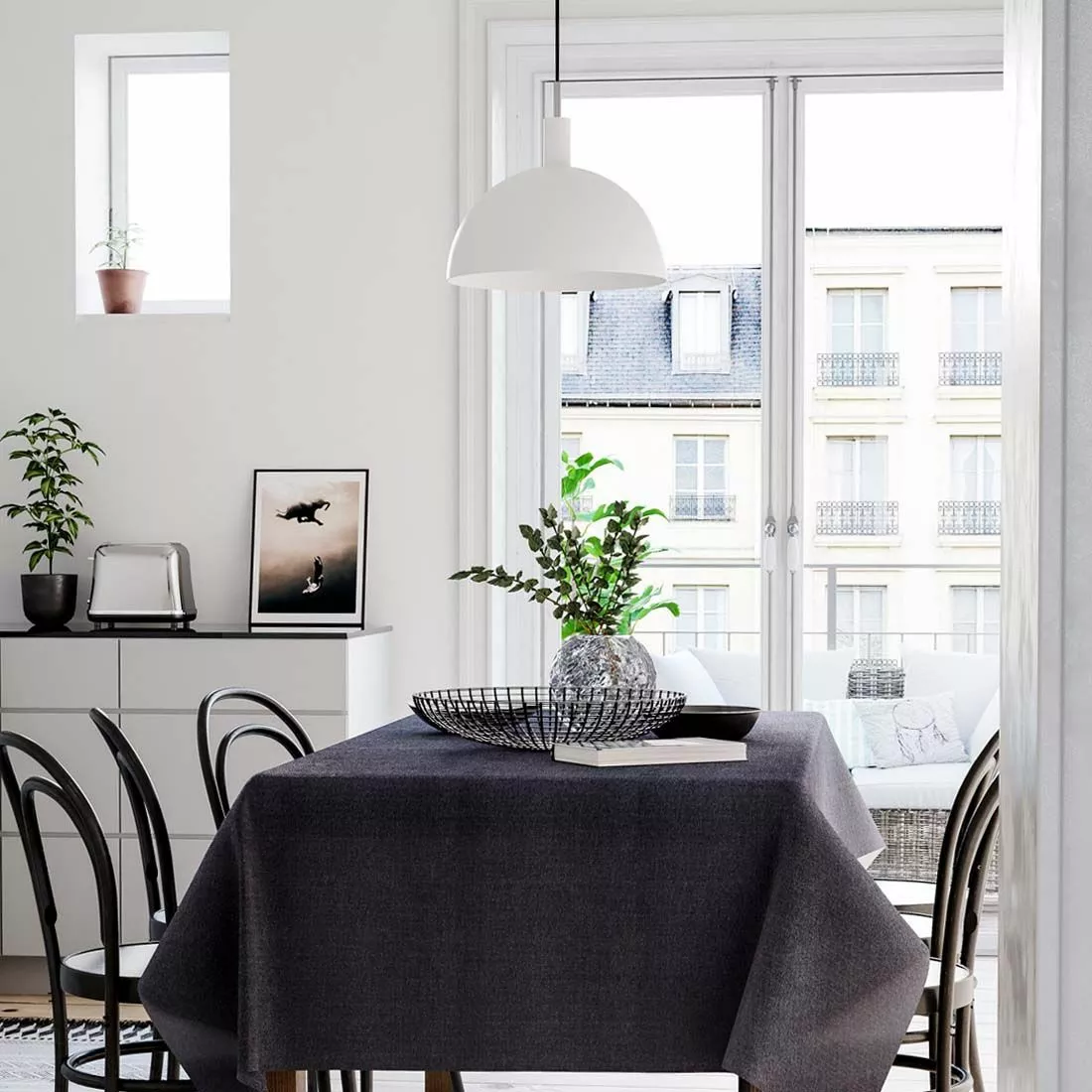 Cabano är en stilren taklampa med ett okomplicerat formspråk i en krispigt mattvit nyans. Skärmen är mjukt rundad i formen och tillverkad i metall där den vita insidan ger ett bra och riktat ljus ned mot bordsskivan. Cabano kanplaceras som solirär över det mindre köksbordet eller i par över det större matbordet.