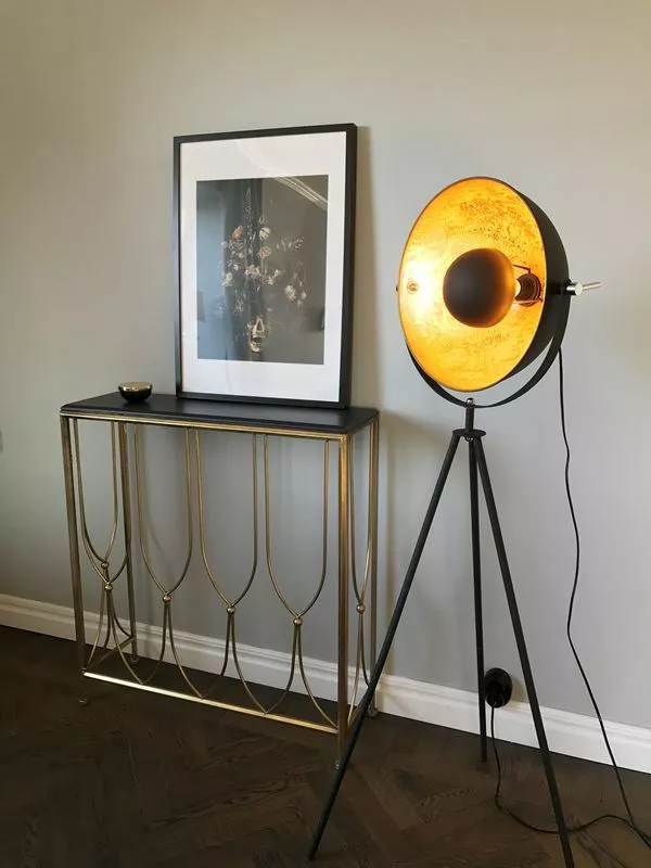 Familjen Captain från By Rydéns har utökats med en golvlampa i ett nättare utförande. Captain är verkligen en kapten i rummet med sina tre ståtliga ben och sin vinklingsbara svarta kupolformade skärm med bländskydd. Skärmens guldstänkta insida bidrar med ett varmt och behagligt ljus. Bländskyddet bidrar med en spännande ljusbild. Placera Captain i ett hörn och låt den tala för sig själv. Captain är ett blickfång i vilket rum den än står.
