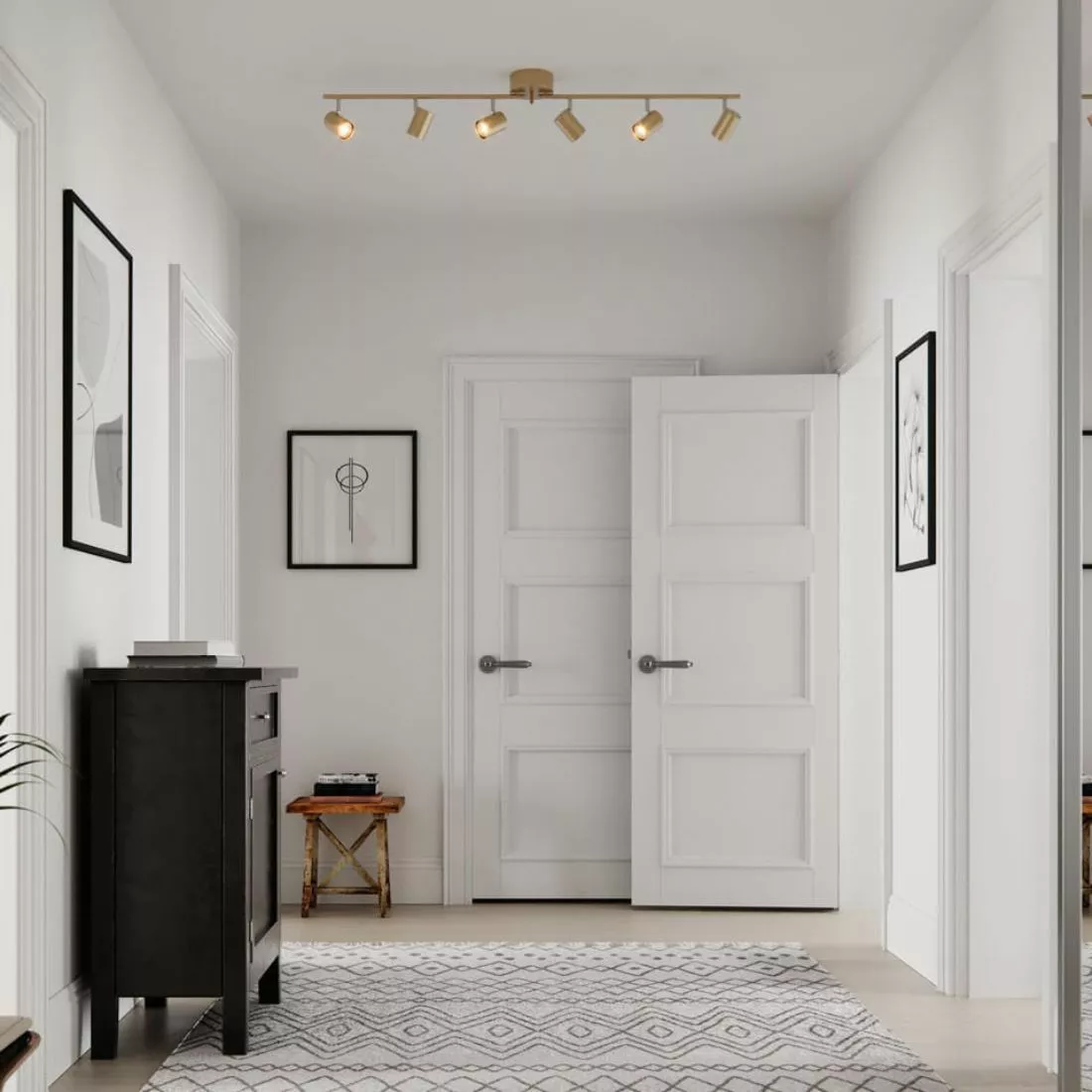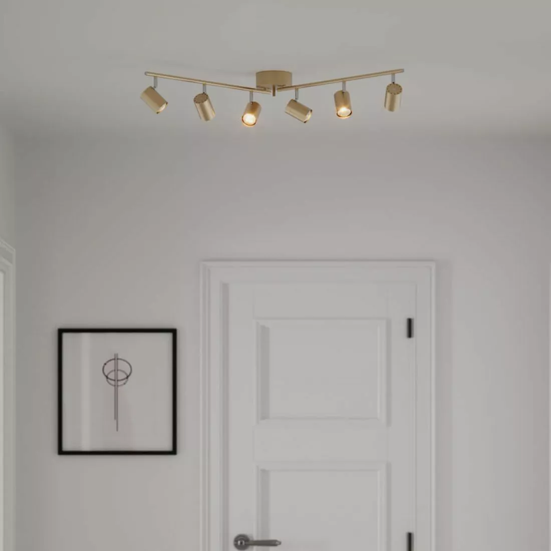 6-armad takspotlight vars spotlights och skenor går att vrida/vika för önskad riktning. Correct spotlight är 17,5 cm hög och 124 cm när den är som bredast. Till Correct Spotlight behöver du 6 styck GU10 ljuskällor med max 7W LED.