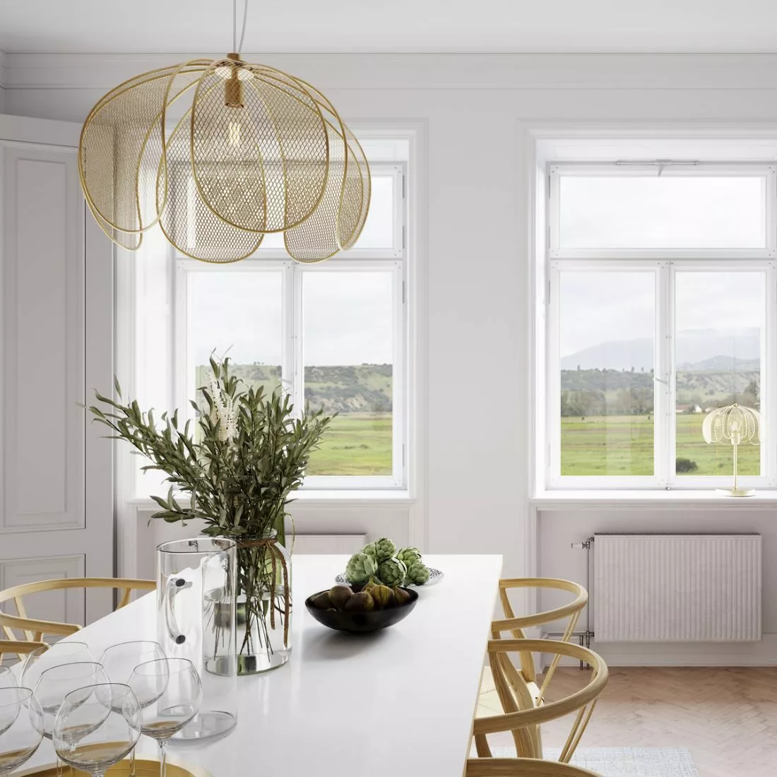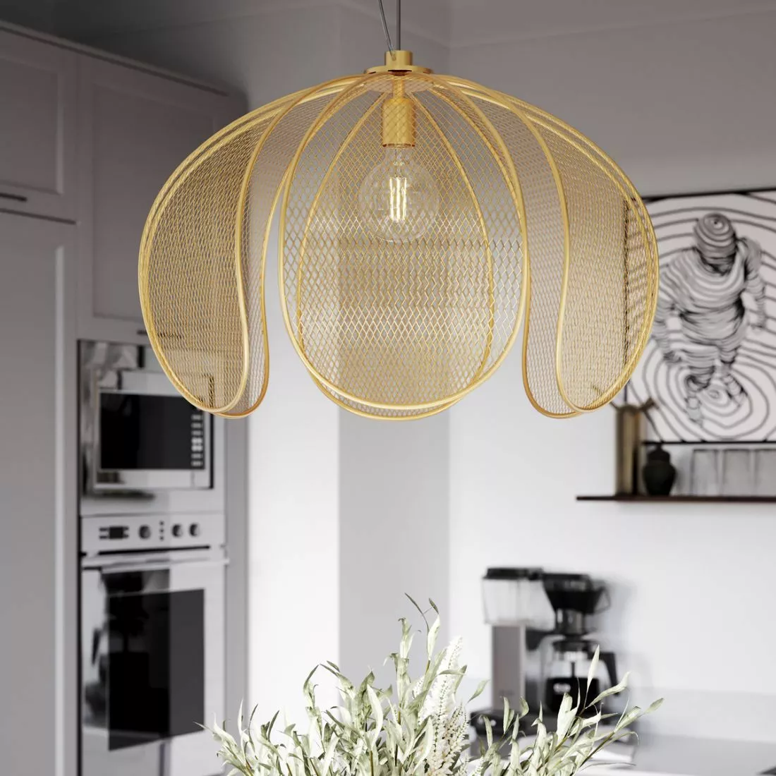 Lampskärmen liknar en blommas kronblad eller en trädkronas förgrening som graciöst böjer sig mot marken. Trots sin lite romantiska look, andas Daisy bordslampa urban lifestyle tack vare den vågade färgnyansen i modern, matt, gulfärgad metall. Med en stansad skärm får ljuset en större chans att sprida sig utan att samtidigt ta över hela rummet. Eftersom takkoppen är i samma färg ger Daisy taklampa ett komplett intryck utan överflödiga detaljer.