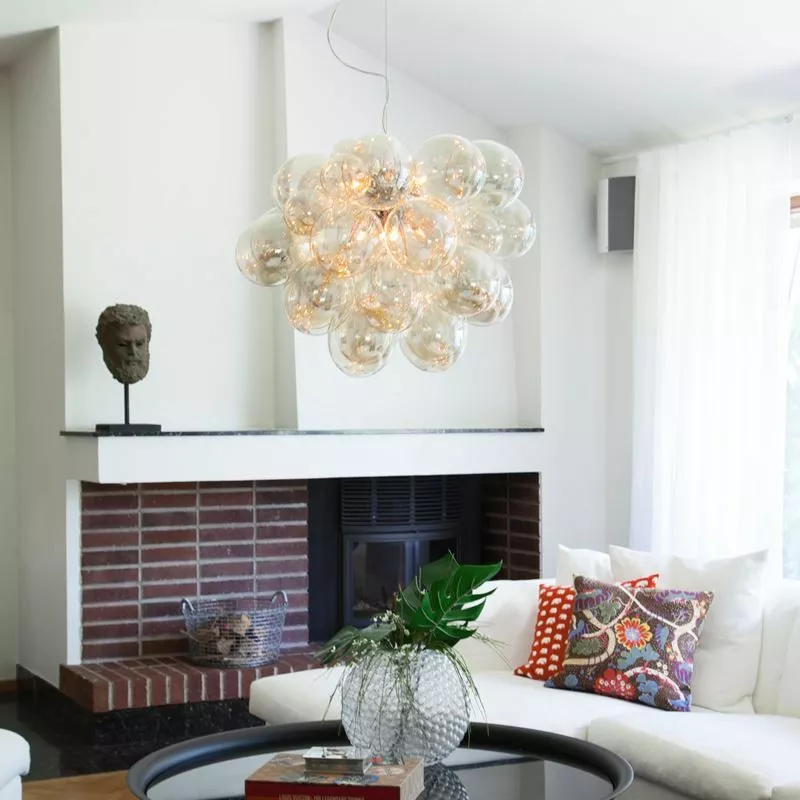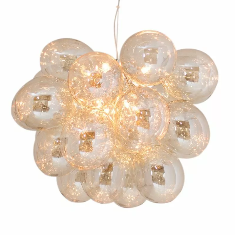 Lampan består av 32 glaskulor som skapar denna häftiga läckra form på Gross lampan. Det skall sitta åtta stycken ljuskällor med G9 sockel som lyser upp glaskulorna.