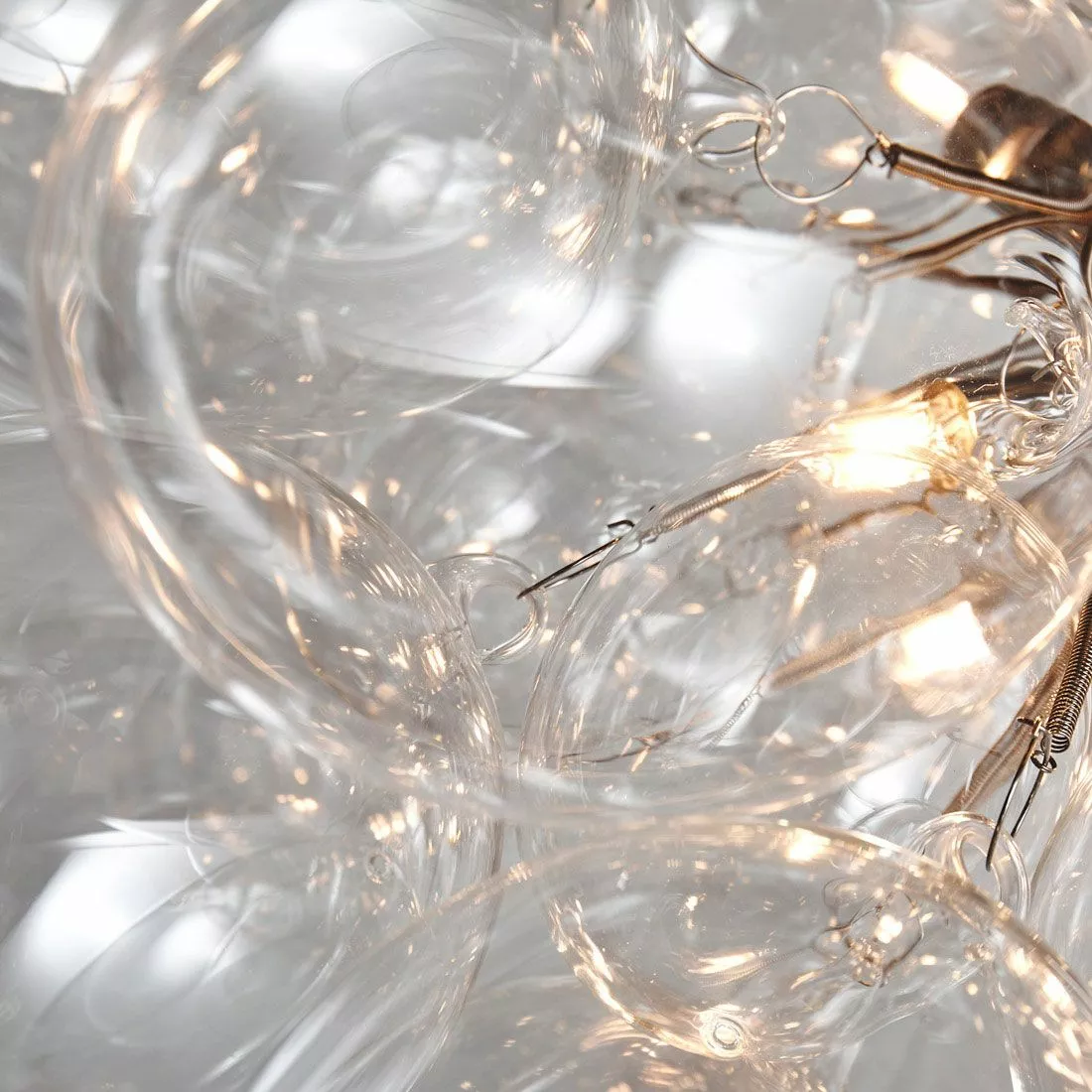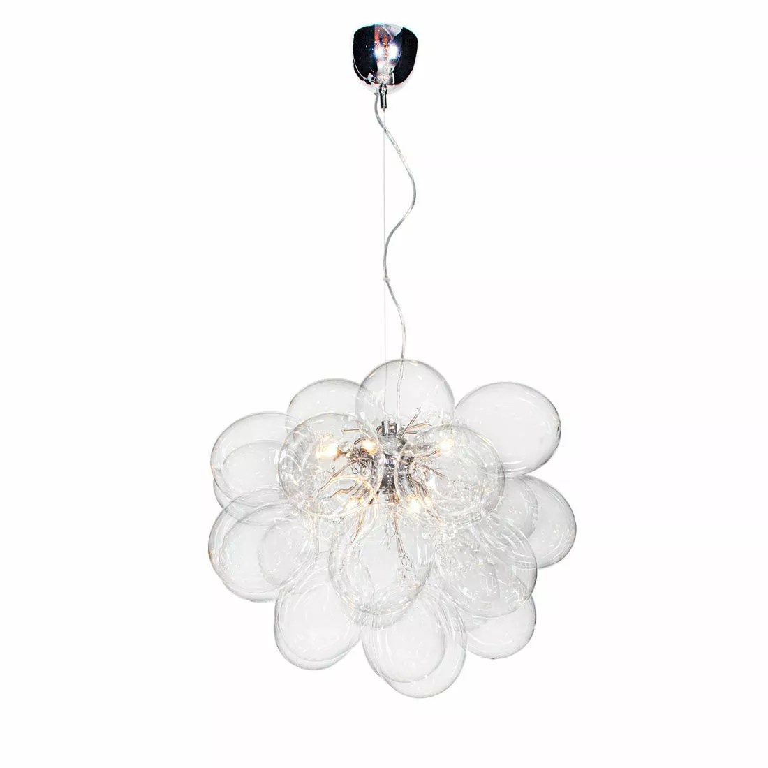 Vår populära taklampa Gross har fått en större släkting! Gross Grande har en ungefärlig diameter på 62 centimeter och är en fantastisk, exklusiv taklampa i glas bestående av skira, munblåsta glaskulor som formar en lampa likt ett moln. Glaskulorna är 32 stycken och består av både 24 större och 8 mindre glaskulor. Gross Grande kräver 8 ljuskällor med sockel G9. Taklampan är höj- och sänkbar och når en maxlängd på X cm och finns i färgställningarna amber, rökgrå och klarglas. Denna taklampa skapar verkligen ett utropstecken i ditt hem och funkar lika bra i ett sovrum som över ett köksbord eller i en rymlig hall.