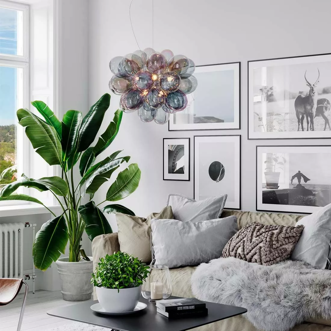 Låt Gross taklampa bli den förhöjande delen av ditt rum och skapa en riktig sevärdhet i hemmet. Den fungerar utmärkt som enda produkt från serien eller tillsammans med övriga produkter från Gross. Lampan mäter 50 cm i diameter och går att höja och sänka. Den sammanlagda sladdlängden är 120 cm. Ljuskällor med G9 sockel köps till separat.