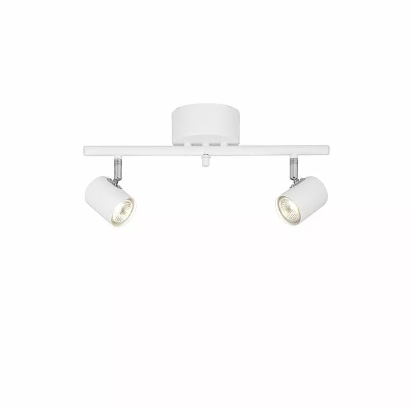 Alpha är tillverkad i metall och har två stycken lamphuvud med GU10 sockel där du själv väljer ljuskälla.