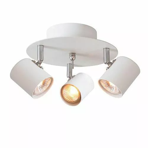 Rund takspotlight med tre st riktbara spotlights. Bestycka armaturen med LED eller halogen ljuskällor.
