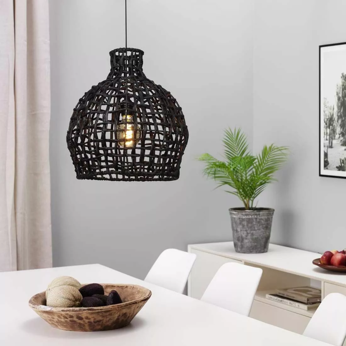 Takskärmen Vattenhyacint är en vacker takskärm som är tillverkat av vattenhyacint. Skärmen är svart, 45cm hög och 33cm i diameter. Placera skärmen över ett matsalsbord eller i uterummet.