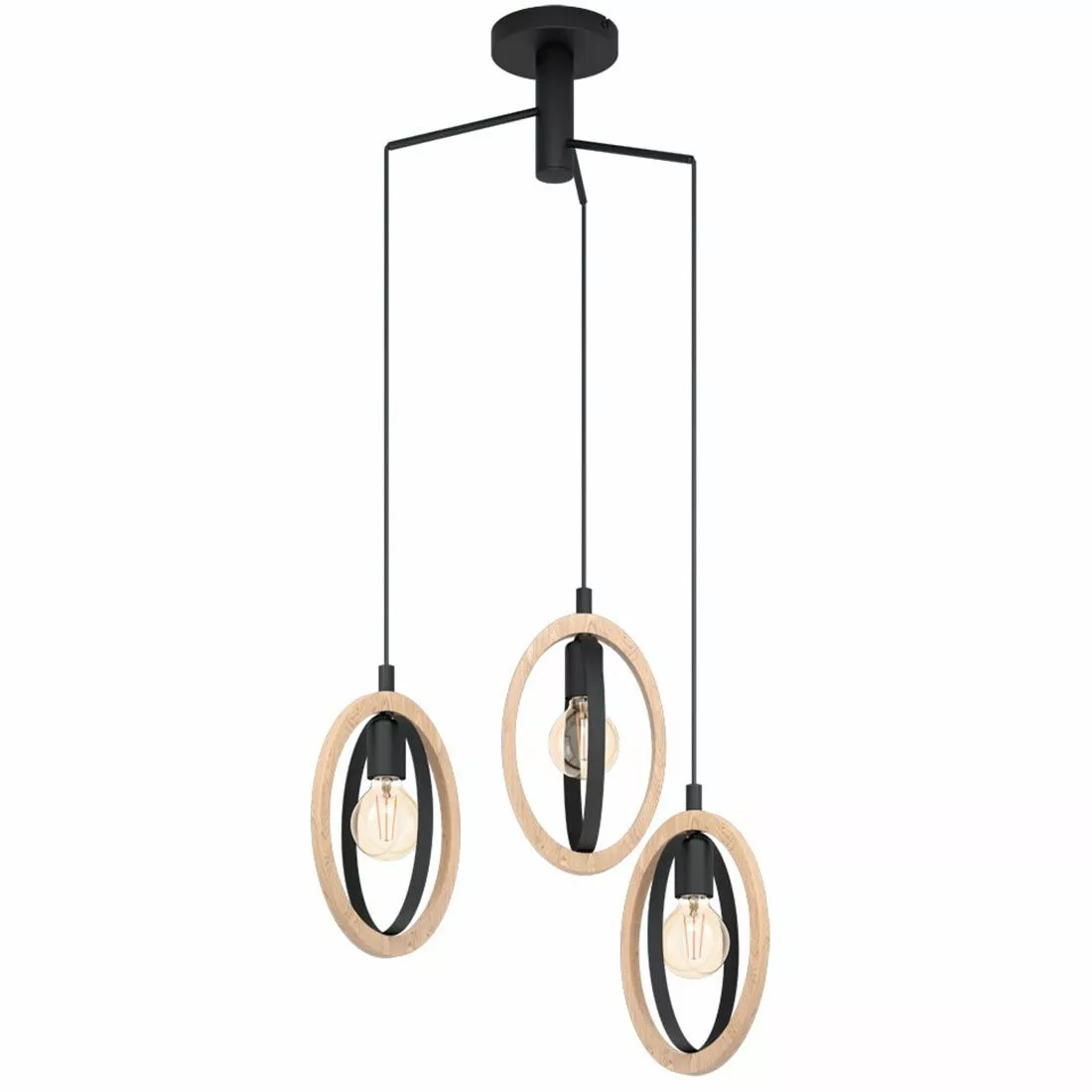 Denna taklampa med tre ljuskällor är snygg med sina ovala former i svart metall och trä. Basildon är snygg att placera över matsalsbordet, soffbordet eller i sovrummet.