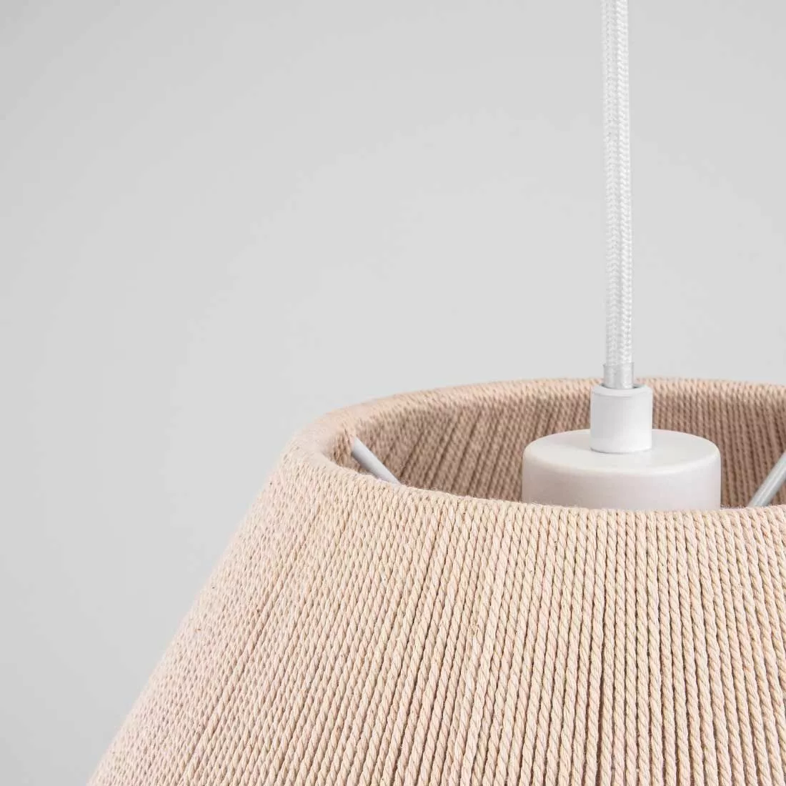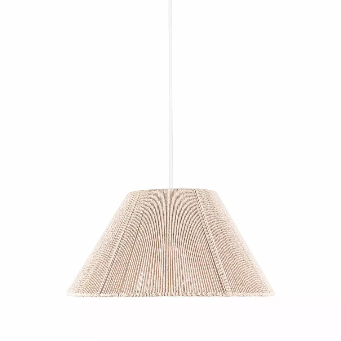 Taklampan Anna från Globen Lighting med sin svala skandinaviska känsla har en lampskärm gjord i naturlig ofärgad bommullstråd som lindats för hand. Taklampan Anna hänger i en 120cm lång vit textilkabel med vit takkopp. Taklampan kompletteras med en E27-ljuskälla utefter behov samt takkontakt.