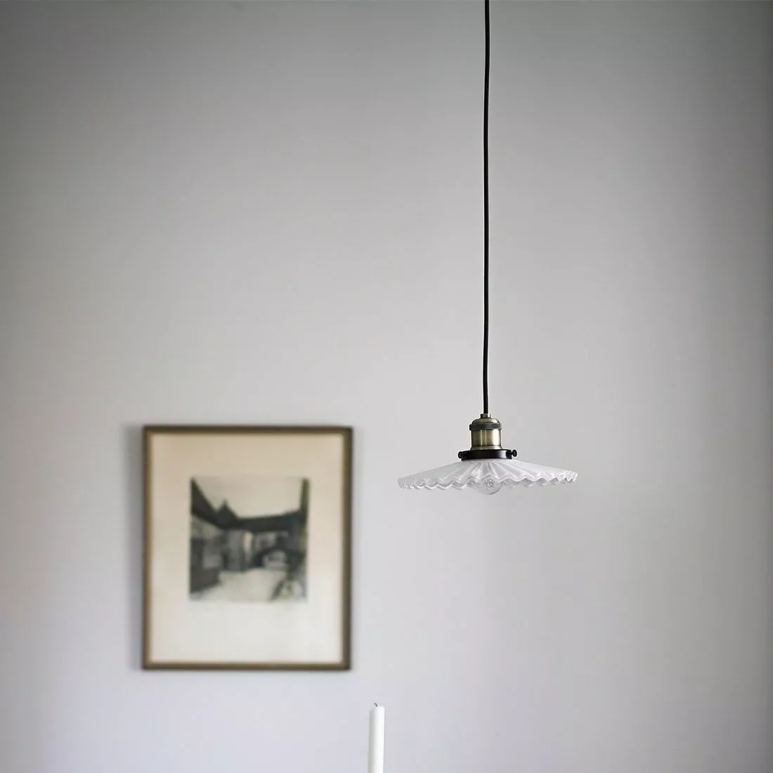Sekelskiftsinspirerad liten pendel i skomakarstil med veckat vitt glas och metalldetaljer i mattsvart och antikmässing. Lika vacker över det lilla köksbordet som i fönstret. Cobbler har en 120 cm lång svart textilkabel och konformad svart takkopp i plast. Bredd: 25 Höjd: 13 (cm) Djup: 25 Lamphållare: 1xE27 Max 60W