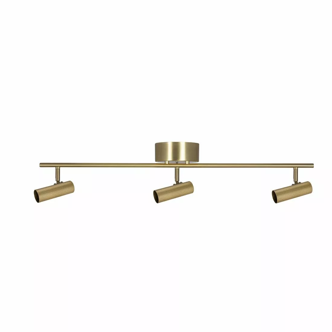 Hubble är en stilren takspotlight med tre spottar i minimalistisk design att placera som allmänljus eller punktbelysning i vardagsrum, hall eller kök. En stilren detalj med dekorativa räfflor på en i övrigt stilren lampa i mässingsfärgad metall.