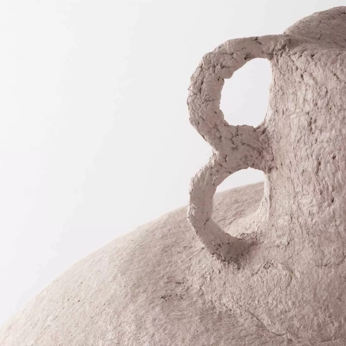 Taklampan Maché är tillverkad i en varmgrå papier-maché, en teknik som innebär att den gjuts av papper tillsammans med lim. Kännetecknat för papier-machér är att form och struktur är unikt för varje lampa och kan skilja sig både från bild och mellan olika exemplar. Detta är en del av charmen i dess jordnära uttryck. Taklampans formspråk är besläktat med toppen av en stor urna i keramik och har symboliska handtag vid lampsockeln som ger Maché dess karaktäristiska uttryck. Komplettera Maché med takkomtakt och ljuskälla utefter behov.
