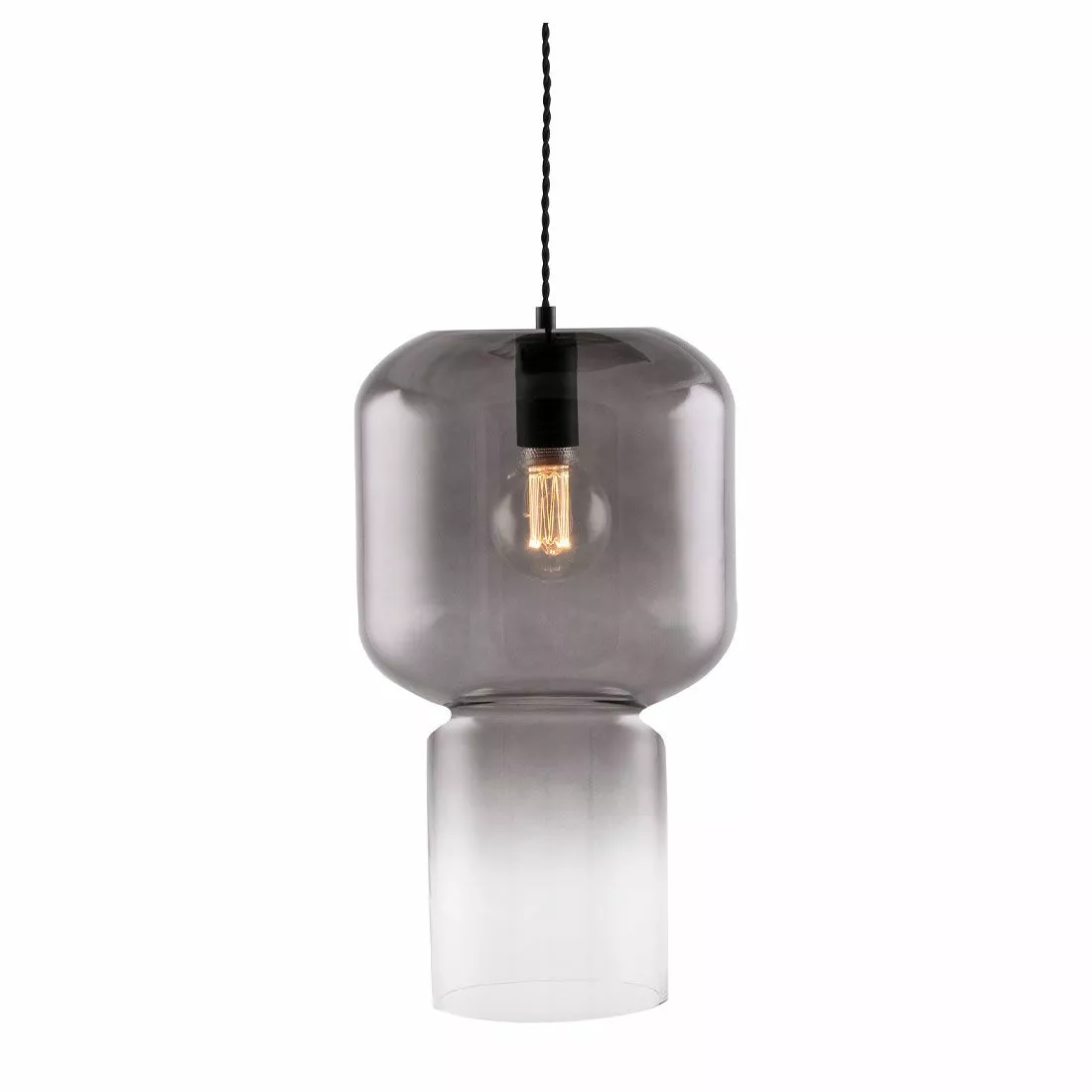 Formgivaren Mimmi formger ofta organiskt, runt och mjukt, vilket också speglas i lampserien Nog för Globen Lighting. Nog taklampa har ett stilrent formspråk. Glaskupan är gjuten i ett stycke, med en midja på mitten och glaset går från mörkt rökfärgat till klarglas. Nog har en 120 cm lång svart tvistad textilkabel samt takkopp i svart plast. Bredd: 24,5 Djup: 24,5 Höjd: 45 (cm). Lamphållare: 1xE27 Max 60W.