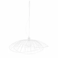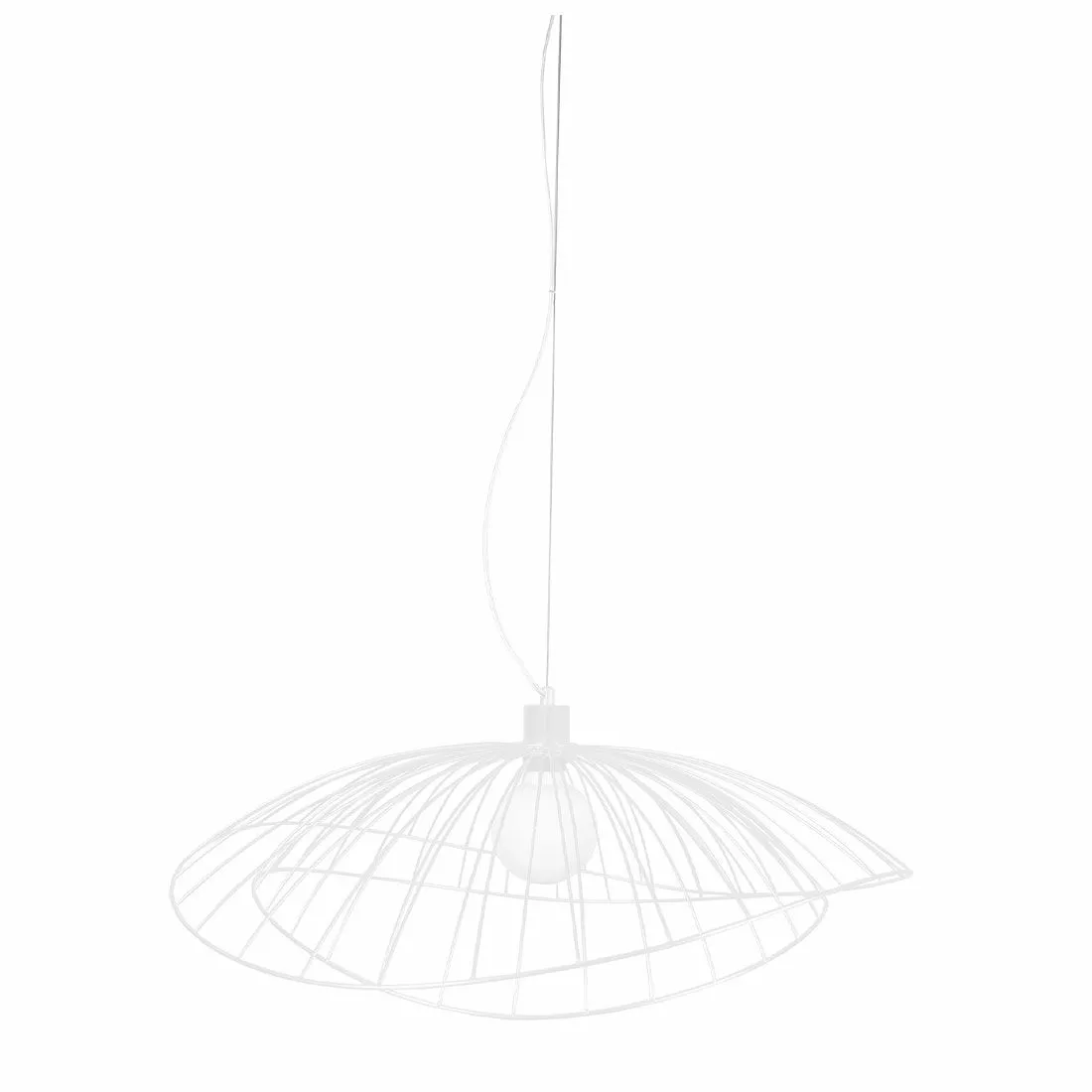 Mjuka och grafiska taklampan Ray i mattvitlackad i metall som likt en rocka är vågformad i ytterkant. Välj själv hur du vill arrangera de två skärmarna, ovanpå- eller inuti varandra för att få en lägre pendel. Lampan har en 120 cm lång vit textilkabel med vajer samt matchande takkopp i mattvitlackad metall. : 70 Djup: 70 Höjd: 23-36 (cm) Lamphållare: 1xE27 Max 60W