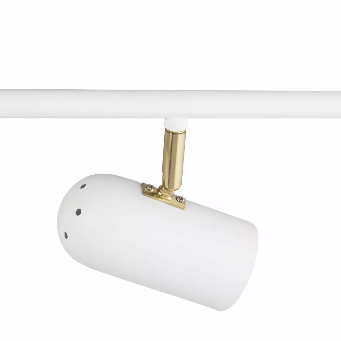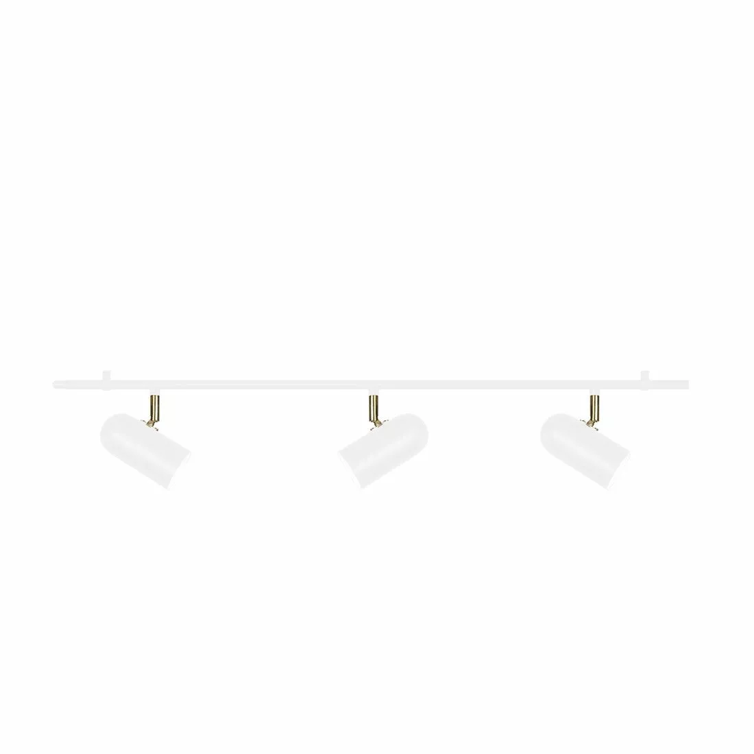 Serien Swan från Globen Lighting är elegant och har ett nätt och mjukt formspråk. Swan takspotlight har 3st riktbara vita spottar placerade på en vit skena med detaljer i mässingsfärgad metall. Med Swan spotlight följer en 200cm lång vit textilkabel med kopplingsplint (sockerbit) att direktansluta eller komlpettera med takkontakt eller väggkontakt. Swan är perfekt att placera i taket längs en vägg för att punktbelysa en tavelvägg eller för effekten släpljus på väggen.