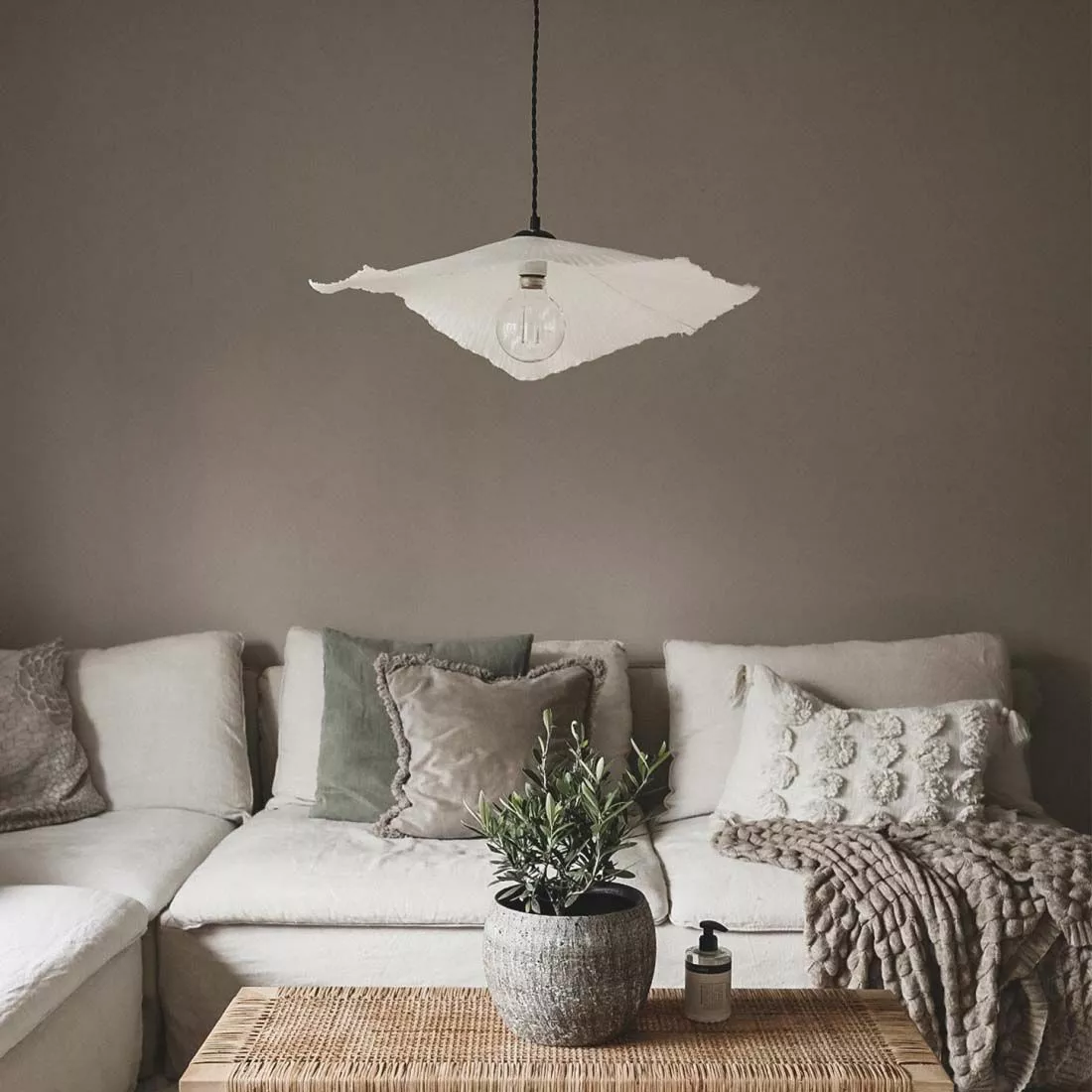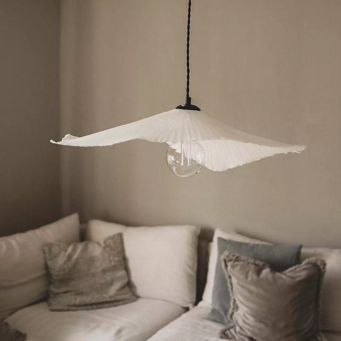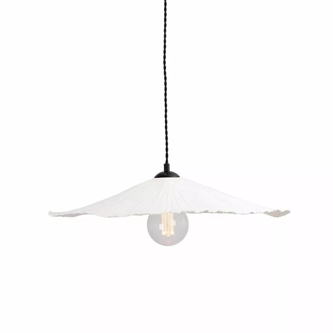 Tropez för tankarna till Medelhavet och Franska rivieran. Tropez är tillverkad av Papier-maché. Pappret är återvunnet och oblekt. Lampan har en 120 cm lång tvistad svart textilkabel samt takkopp i svart plast. . Bredd: 60 Djup: 53 Höjd: 10 (cm) Lamphållare: 1xE27 Max 60W. Vi rekommenderar varsamhet vid uppackning