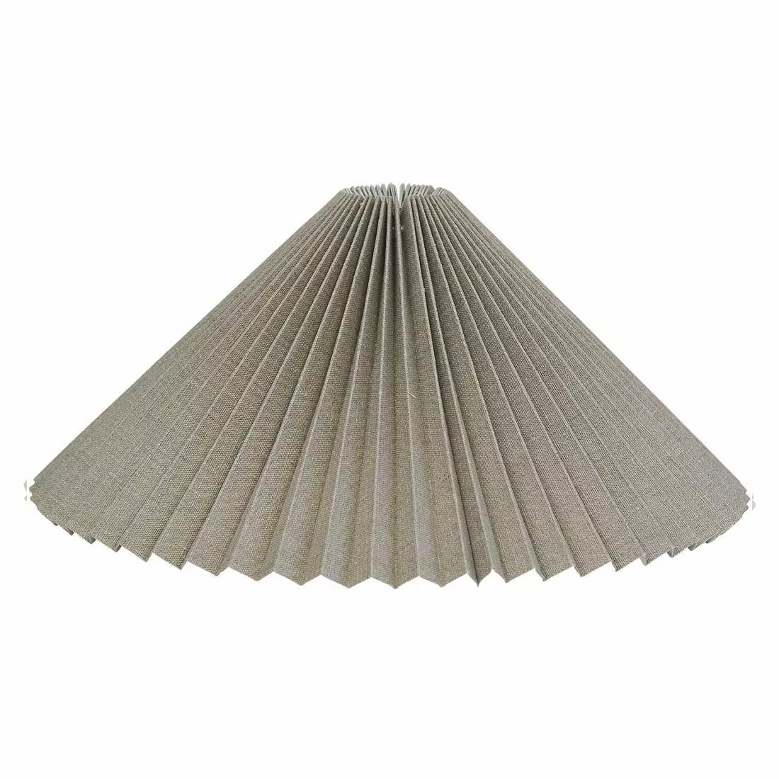 Klassiskt veckad naturfärgad lampskärm i vid modell med E27 toppringfäste för montering på takupphäng eller golvlampa med läsarm.