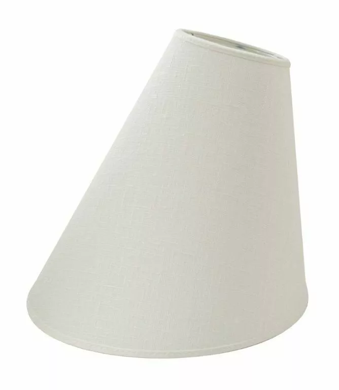 Carolin, rund/snedskuren golvskärm i vitt linnetyg.