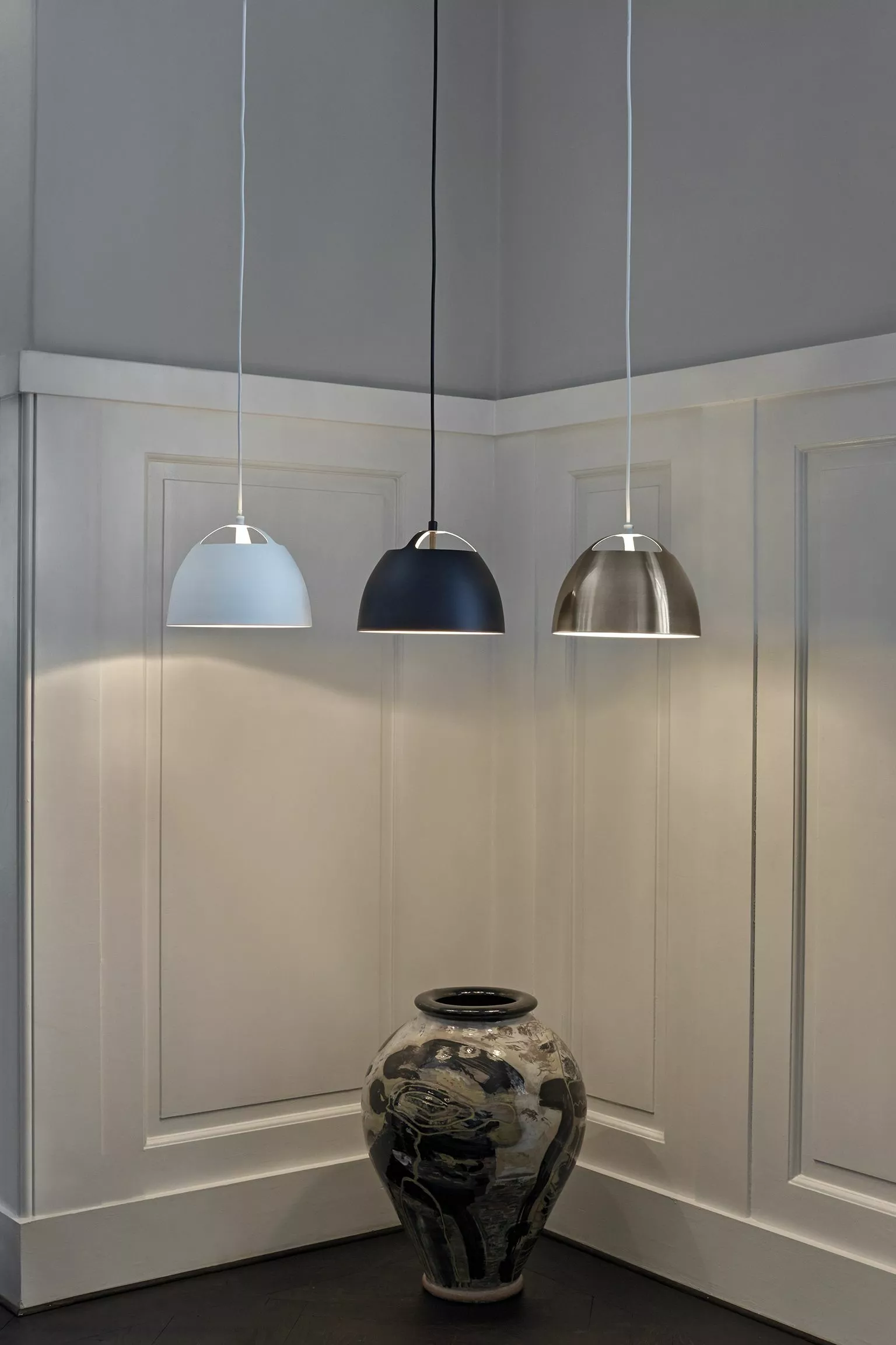 Fjord taklampa kommer från det danska varumärket Halo Design. Lampan är lättplacerad och ger ett stilrent intryck med sin enkla form och fina detalj högst upp på skärmen. Fjord passar lika bra i par över ett lite större köksbord/bardisk eller varför inte ovanför ditt vardagsrum.