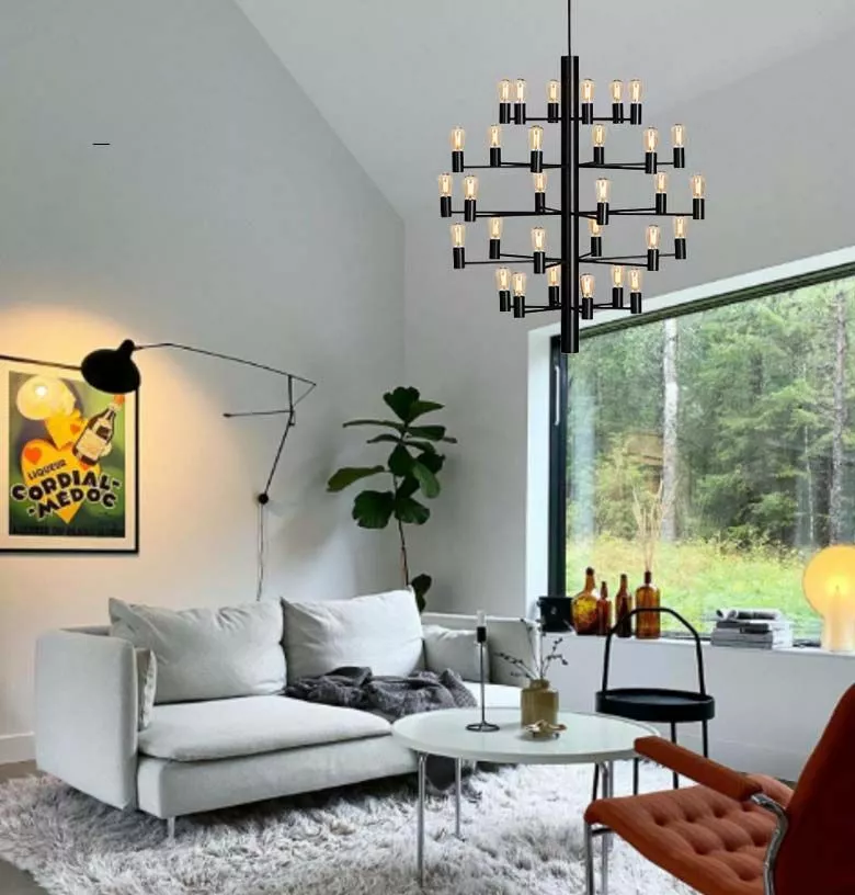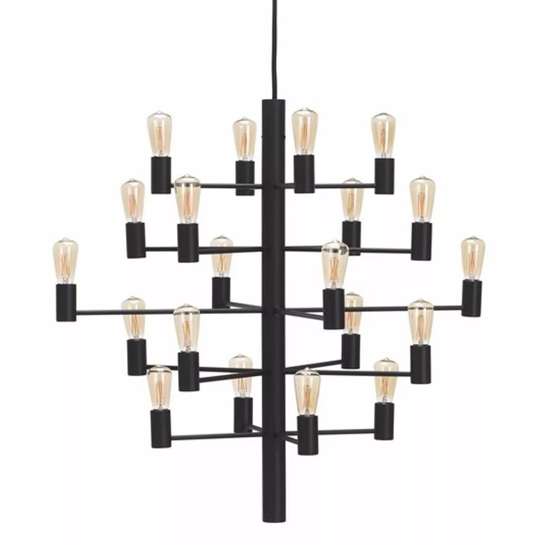 Manola takkrona 30-armad i svart från Herstal. Manola är en stilren takkrona i modern design. Med sitt klassiska snitt men ändock samtida design i raka, enkla former är Manola helt rätt i tiden. Manola 30-armad takkrona är en mäktig pjäs som gör sig allra bäst i rum eller utrymmen med rejäl takhöjd och hänger gärna ner från ett ryggåstak. I ett rum med högt i tak kommer 30-armade Manolans vackra formspråk till sin fulla rätt och du har en taklampa för generationer framåt.