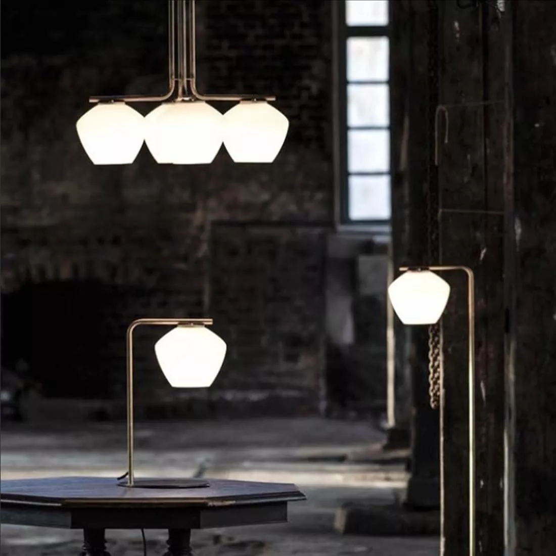 DK Golvlampa Råmässing/Opal Matt