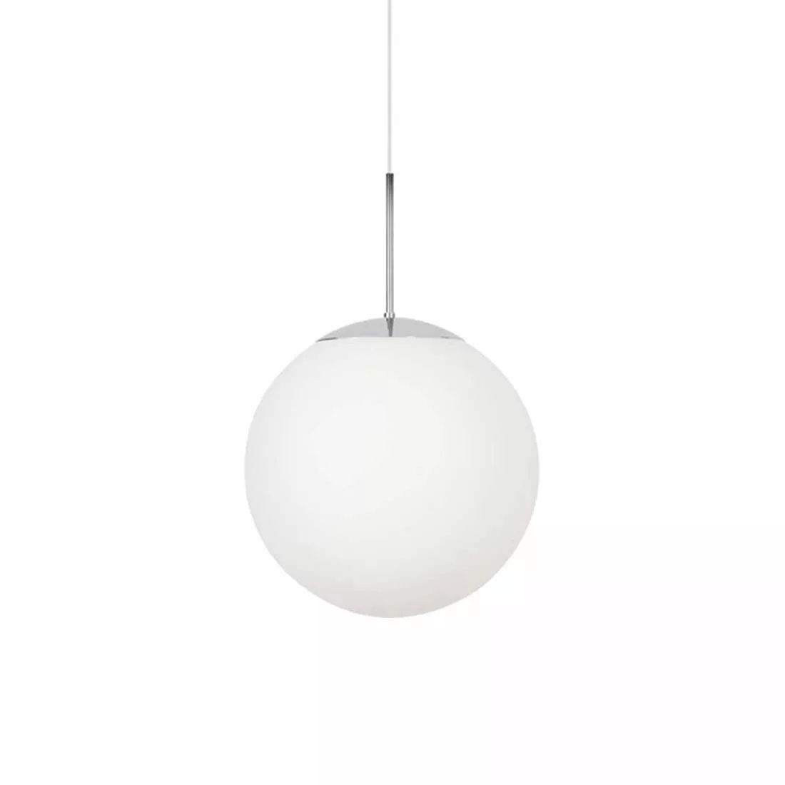 Glob en klassisk stilren taklampa i vitt opalglas och krom.