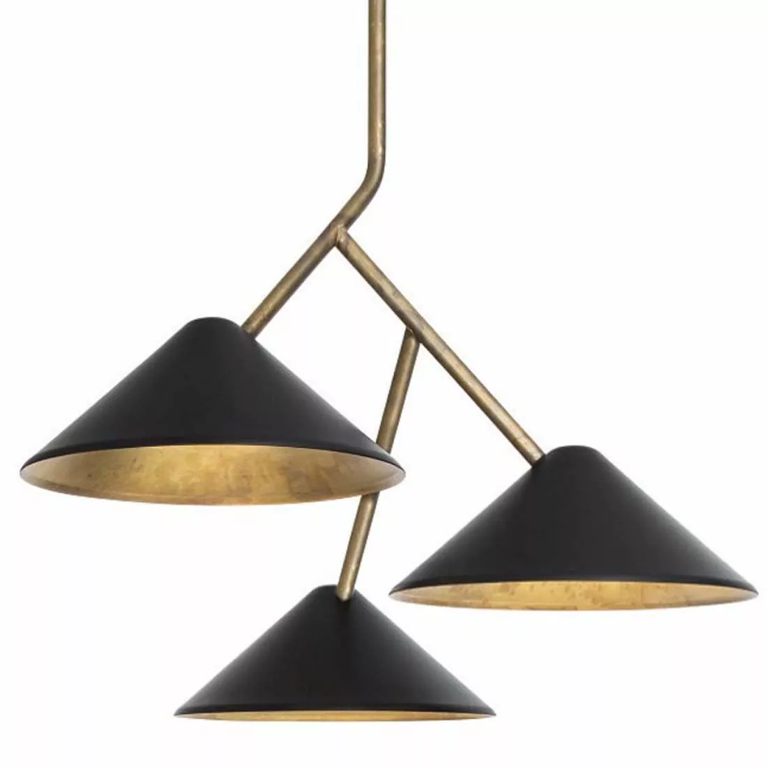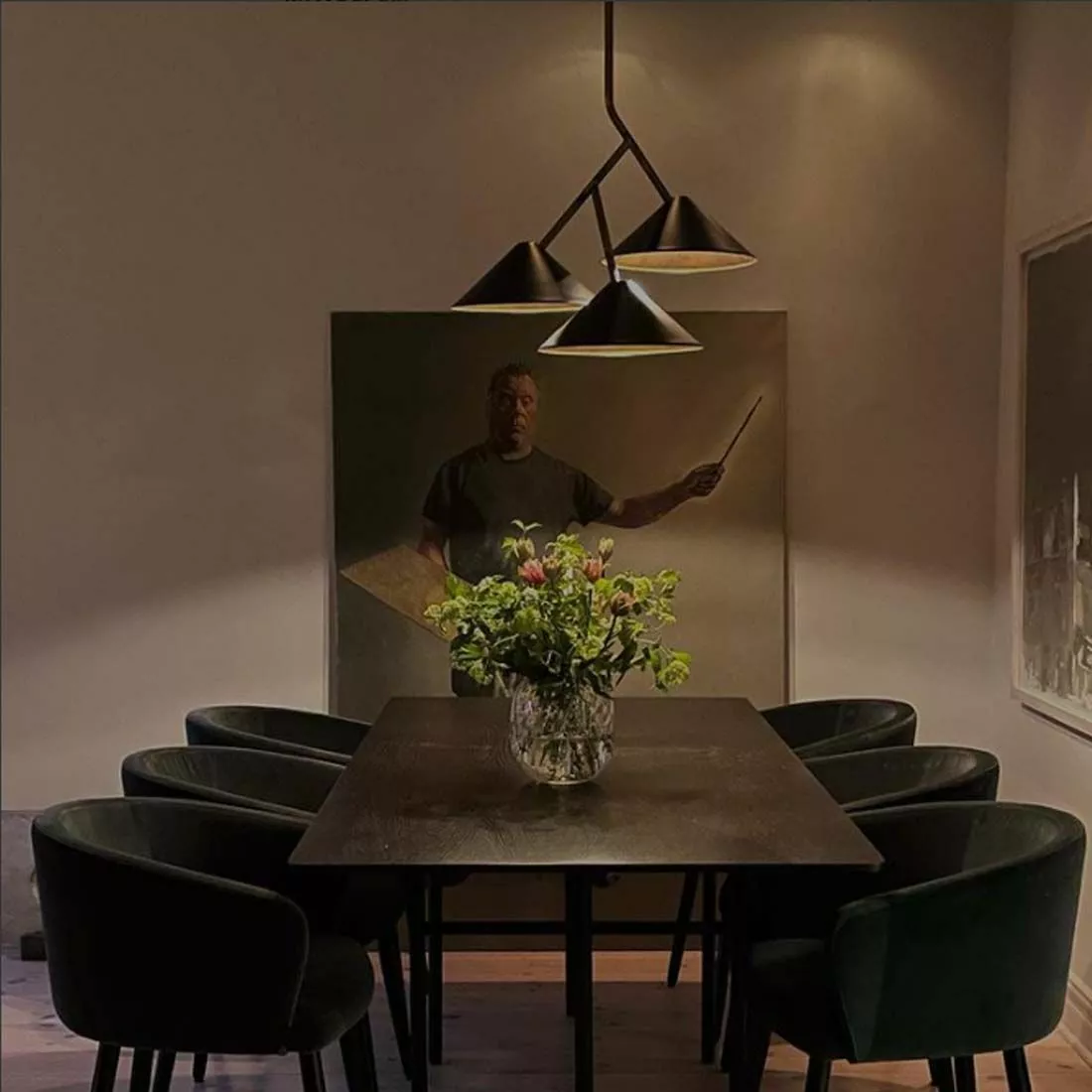 Taklampan Grenverk formgiven av Johan Carpner för Konsthantverk. En skulptural taklampa med tre svarta konformade lampskärmar förgrenat på tre armar i råmässning. En vacker design som ger ett starkt intryck i ett rum eller över matbordet. Konsthantverk står för ett äkta svenstillverkat hantverk med genuina naturliga material av mässing, järn och glas. Konsthantverk i Tyringe skapar tidlösa belysningsarmaturer för de Svenska hemmen i material som håller för generationer framåt.