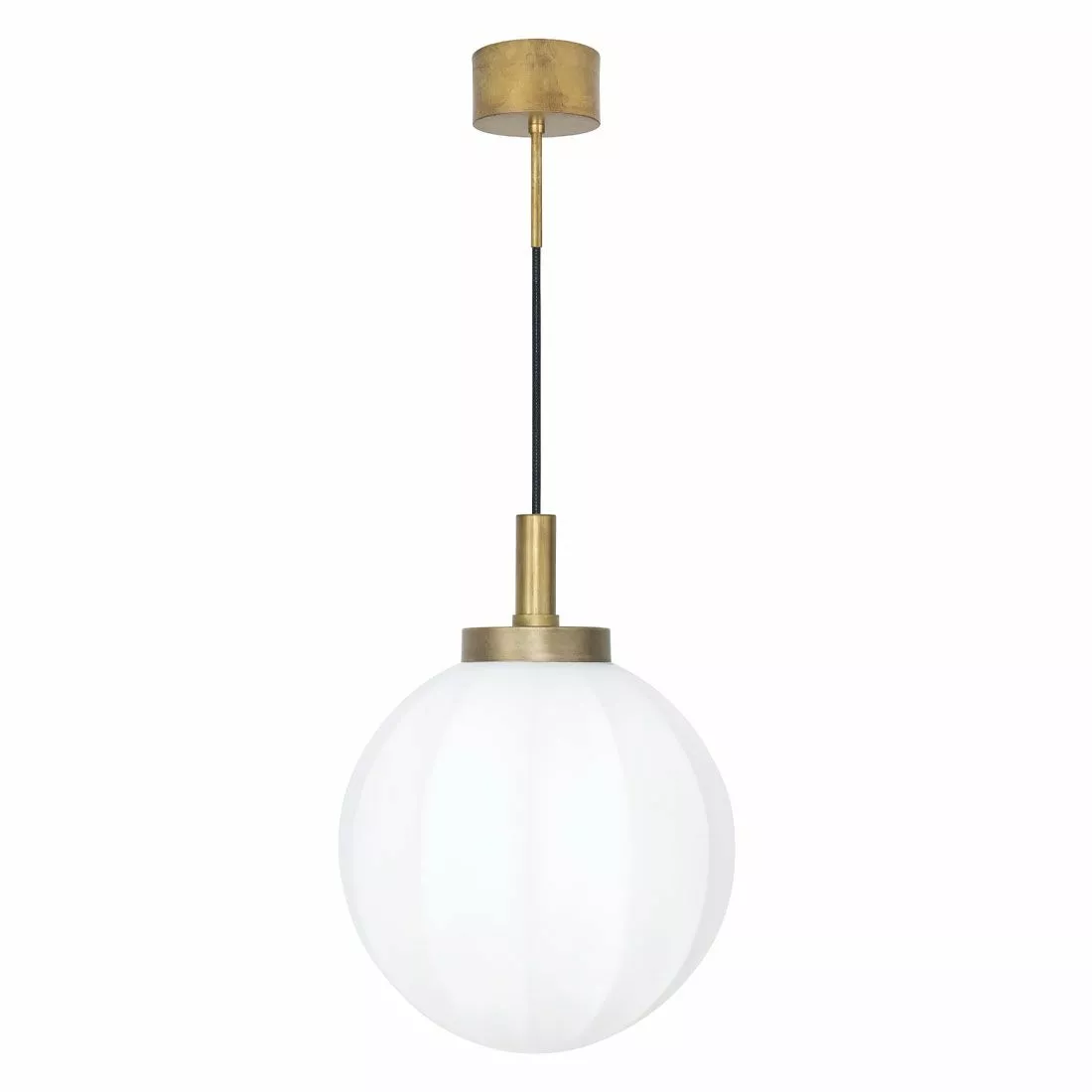 Denna vackra taklampa är formgiven av Johan Carpner för svenska Konsthantverk. En charmig taklampa där klassiska materialkombinationer möter en lätt industriell känsla med tydliga influenser av art deco. Stomme i äkta råmässing ger en genuin och gedigen karaktär och en diskret formad kupa i sidenmatt opalvitt glas mjukar upp och ger ett diffuserat avbländat och behagligt ljus.
