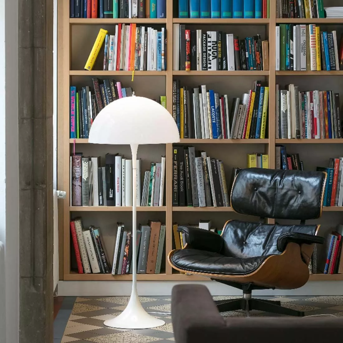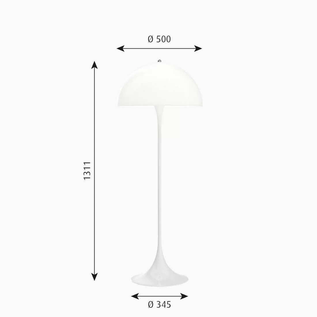 Klassiska designserien Panthella formgiven av Verner Panton är välkänd för sitt ikoniska formspråk. Lampan ger ett behagligt ljus som tack vare den opalvita lampskärmen i akryl delvis reflekteras nedåt på den trumpetformade lampfoten och samtidigt ger ett jämnt och mjukt ljus genom skärmen. Detta ger ett bländfritt ljus som samtidigt förstärker golvlampans distinkta karaktär som kännetecknas av Panthella. Golvlampan har en E27 sockel där du placerar en ljuskälla utefter eget tycke och smak.