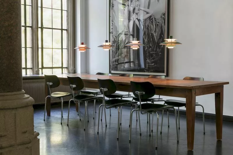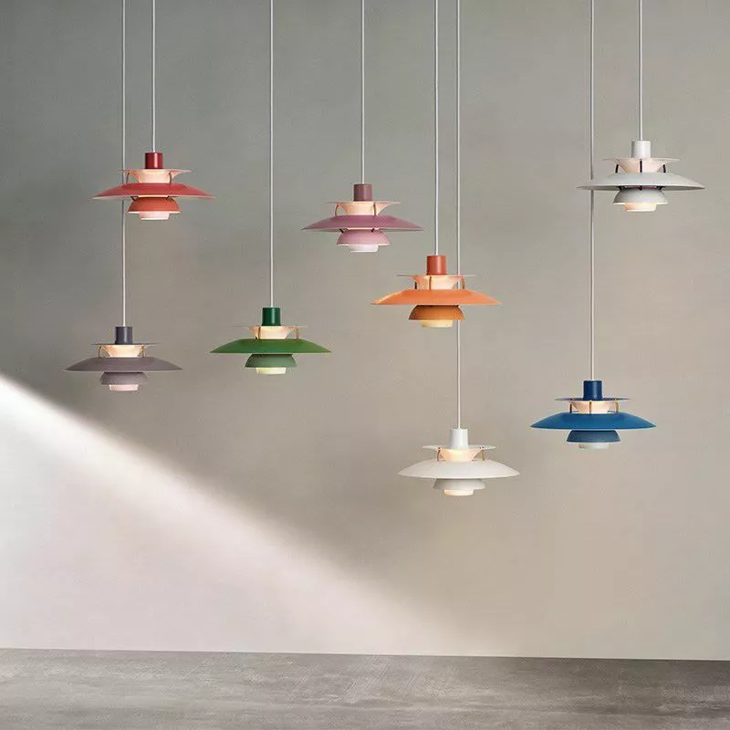 PH 5 Mini takpendel är en färgsprudlande nyhet från Danska Louis Poulsen. PH5 serien är designade så att ljuset från lampan blir bländfritt abelysningspionjären Poul Henningsen som arbetade fram ett treskämssystem som reflekterar merparten av ljuset nedåt. PH 5 Mini är seriens senaste tillskott och är mindre och nättare i sitt uttryck. Perfekt att ha i grupp över en köksö eller över ett större matbord. PH5 Mini’s färgpalett är framtagen i samarbete med färgexperten Louise Sass och lanseras i åtta nya ljuva färger vars nyans gradvis går från mättad till blek kulörton. Liksom alla PH5 så har även Mini-verisionen den karaktäristiska accentfärgen i bländskyddet samt bronsfärgade aluminiumstag som håller skärmarna på plats på ett effektfullt sätt. Vi rekommenderar en LED-ljuskälla som tillåter dig komma upp i ljusstyrka.