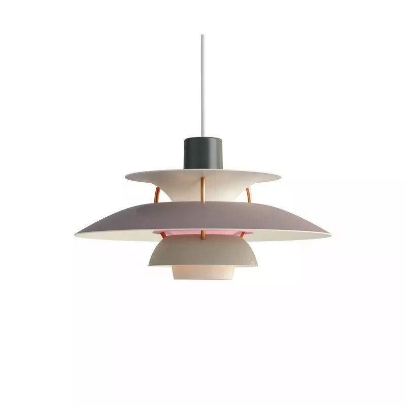 PH 5 Mini takpendel är en färgsprudlande nyhet från Danska Louis Poulsen. PH5 serien är designade så att ljuset från lampan blir bländfritt abelysningspionjären Poul Henningsen som arbetade fram ett treskämssystem som reflekterar merparten av ljuset nedåt. PH 5 Mini är seriens senaste tillskott och är mindre och nättare i sitt uttryck. Perfekt att ha i grupp över en köksö eller över ett större matbord. PH5 Mini’s färgpalett är framtagen i samarbete med färgexperten Louise Sass och lanseras i åtta nya ljuva färger vars nyans gradvis går från mättad till blek kulörton. Liksom alla PH5 så har även Mini-verisionen den karaktäristiska accentfärgen i bländskyddet samt bronsfärgade aluminiumstag som håller skärmarna på plats på ett effektfullt sätt. Vi rekommenderar en LED-ljuskälla som tillåter dig komma upp i ljusstyrka.