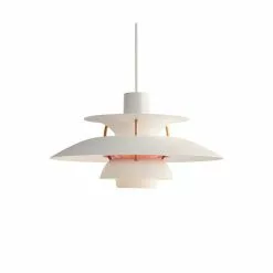 PH 5 Mini takpendel är en färgsprudlande nyhet från Danska Louis Poulsen. PH5 serien är designade så att ljuset från lampan blir bländfritt abelysningspionjären Poul Henningsen som arbetade fram ett treskämssystem som reflekterar merparten av ljuset nedåt. PH 5 Mini är seriens senaste tillskott och är mindre och nättare i sitt uttryck. Perfekt att ha i grupp över en köksö eller över ett större matbord. PH5 Mini’s färgpalett är framtagen i samarbete med färgexperten Louise Sass och lanseras i åtta nya ljuva färger vars nyans gradvis går från mättad till blek kulörton. Liksom alla PH5 så har även Mini-verisionen den karaktäristiska accentfärgen i bländskyddet samt bronsfärgade aluminiumstag som håller skärmarna på plats på ett effektfullt sätt. Vi rekommenderar en LED-ljuskälla som tillåter dig komma upp i ljusstyrka.