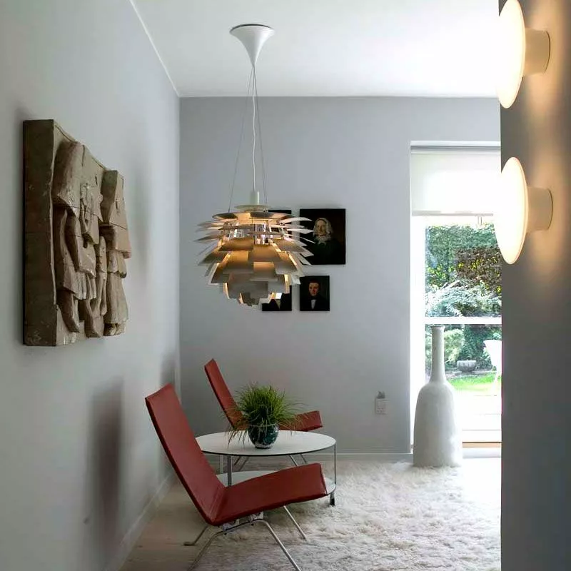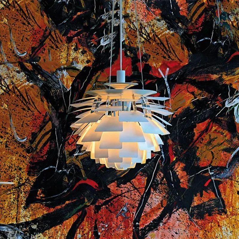Designen av PH Kotten (PH Artichoke) gör att ljuset är bländfritt oavsett vilken vinkel du befinner dig runt lampan. De 72 bladen runt lampan är noggrant vinklade och fördelade på 12 rader med sex blad i varje rad. Ljuset från ljuskällan belyser själva armaturen och ger en rundsymetrisk ljusspridningen. Lampan ger ett behagligt och dekorativt ljus i ditt rum. Ledningslängden på lampan är 4 meter och lampan väger 22,5kg.