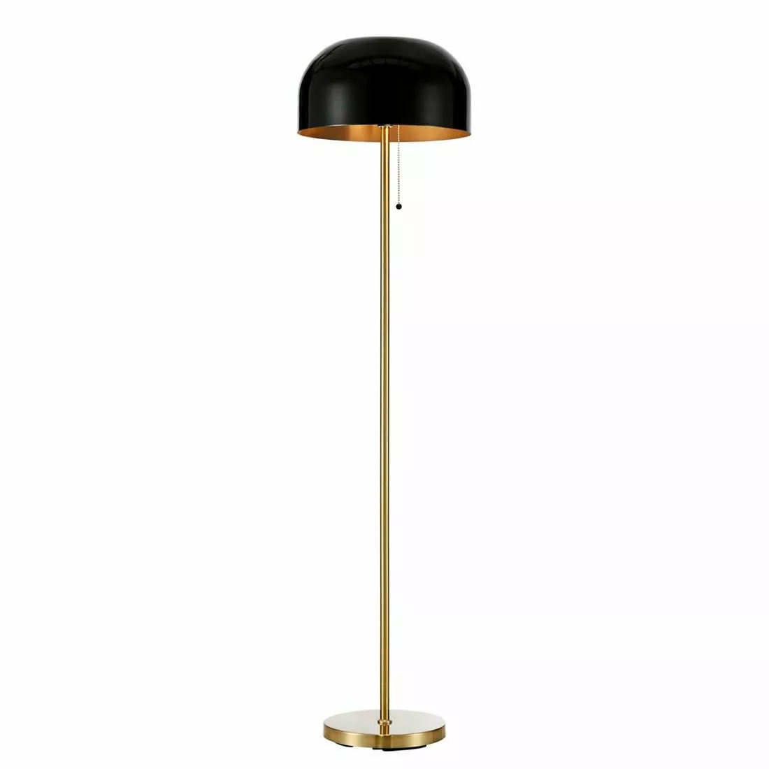 Snygga och stilrena golvlampan Blanca från Markslöjd har en rak fot i mässingsfärgad metall och en mjuk svart kupad lämpskärm som riktar ljuset nedåt. Blanca har en dekorativ detalj där strömbrytaren är monterad med dragsnöre. En trendig flirt med 70-talet som gör sig mycket väl in i våra vardagsrum.