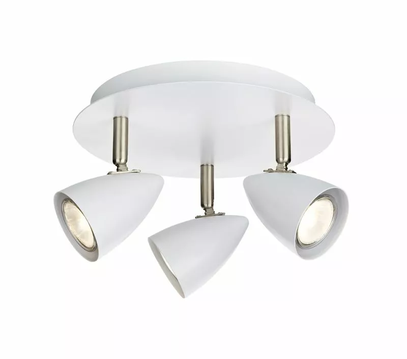 Taklampan Ciro är en stilren spotlight i vitt med tre riktbara spotlights och detaljer i stål. Komplettera Ciro med ljuskällor, se våra rekommendationer till höger.