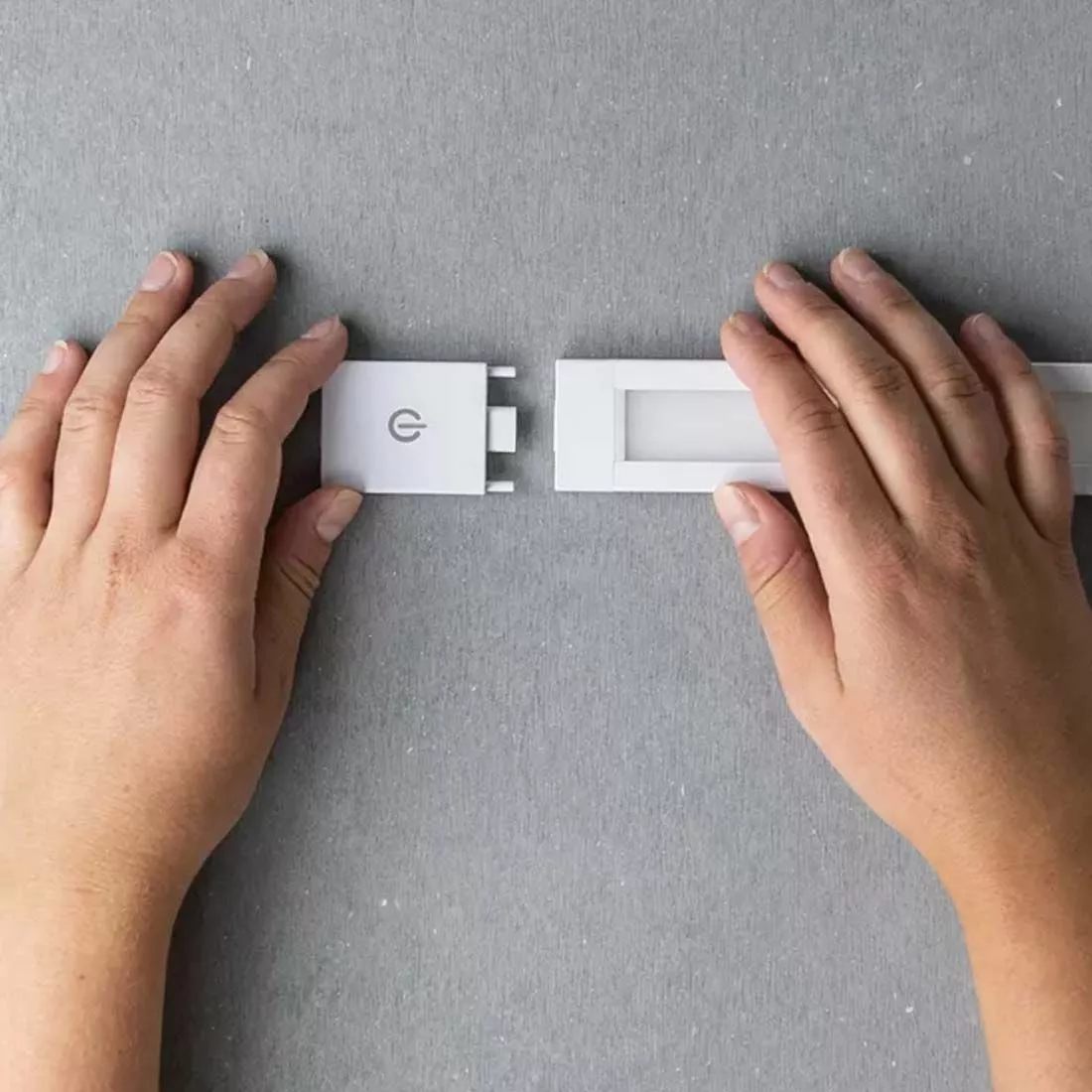 Led-skenorna finns i tre längder, 30cm, 50cm och 100cm. Börja med att mäta upp vilken eller vilka och hur många av de tre längderna av led-skenorna du behöver. Ska de sitta ihop eller monteras en bit isär så finns raka och 90° skarvkoppling som tillbehör samt förlängningskablar för detta ändamål.