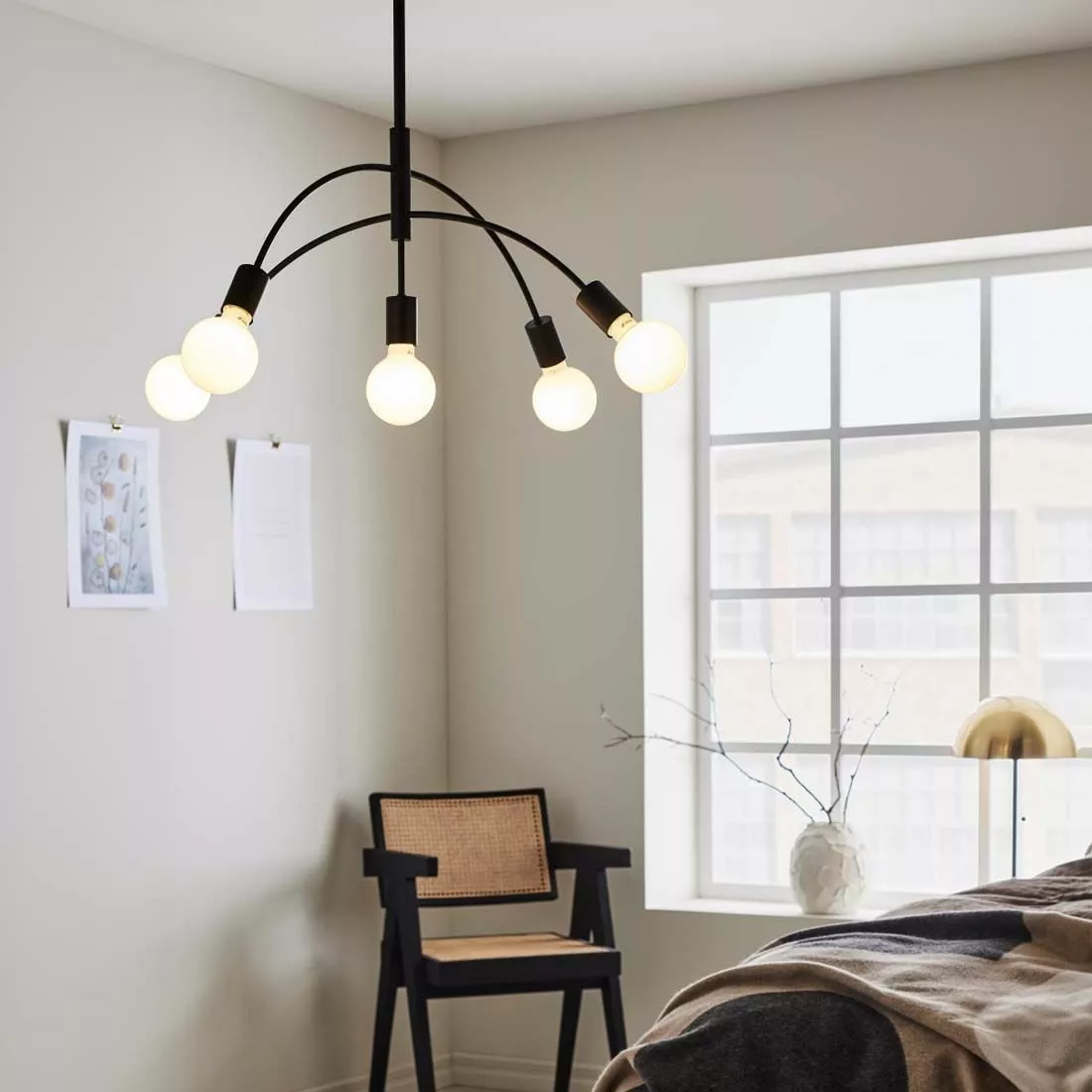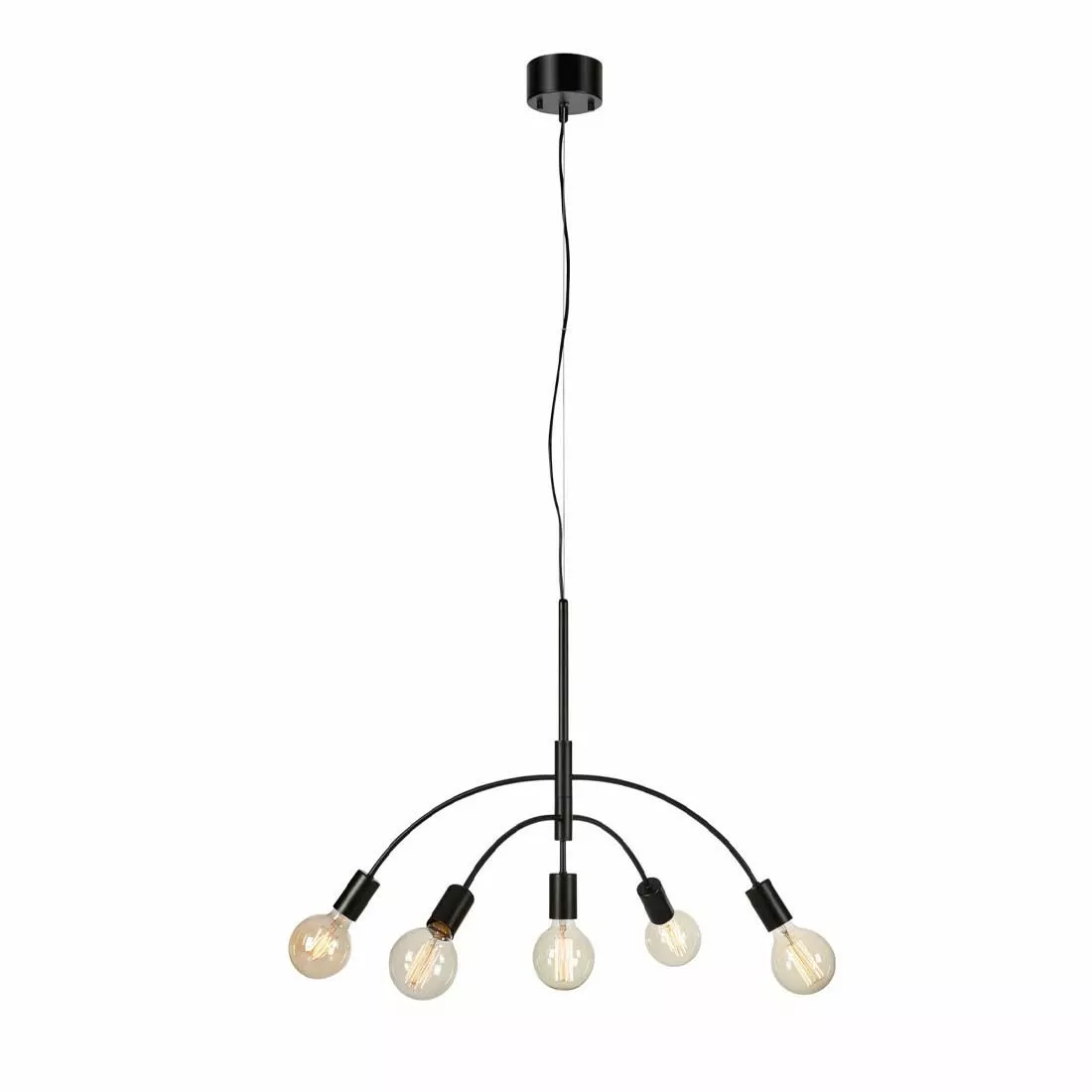 Stilrena Cyngus är en modern taklampa i svart metall med plats för fem st ljuskällor med E27-sockel. Kompletteras med takkontakt och ljuskällor utefter tycke och smak.